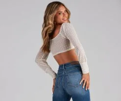 Windsor. Love Affair Textured Off Shoulder Crop Top