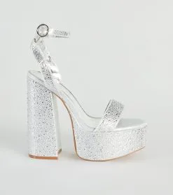 Windsor. Amp Up The Glam Rhinestone Chrome Platform Heels