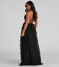 Windsor. Lucilla V-Neck Tiered Mesh Dress