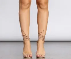 Windsor. Prized Possession Lace Up Clear Stilettos