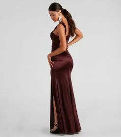 Windsor. Allie Stretch Satin Ruched Mermaid Dress
