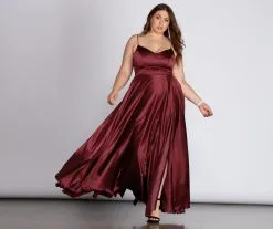 Windsor. Cassie Sleeveless Satin High Slit Formal Dress
