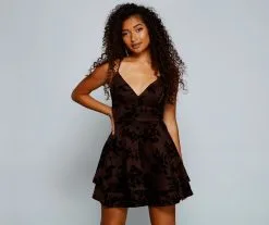 Windsor. Bring The Flare Flocked Velvet Skater Dress