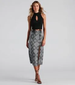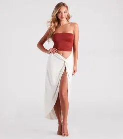 Windsor. Summer Nights Linen High Slit Midi Skirt