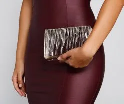 Windsor. Chic Glamour Rhinestone Fringe Clutch