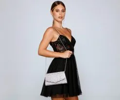 Windsor. All The Glamour Glitter Mesh Crossbody Bag