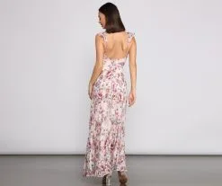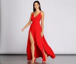 Windsor. Amelia Formal Ruched Ruffle Satin Dress