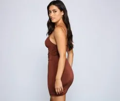 Windsor. Bold Diva Ruched Satin Mini Dress
