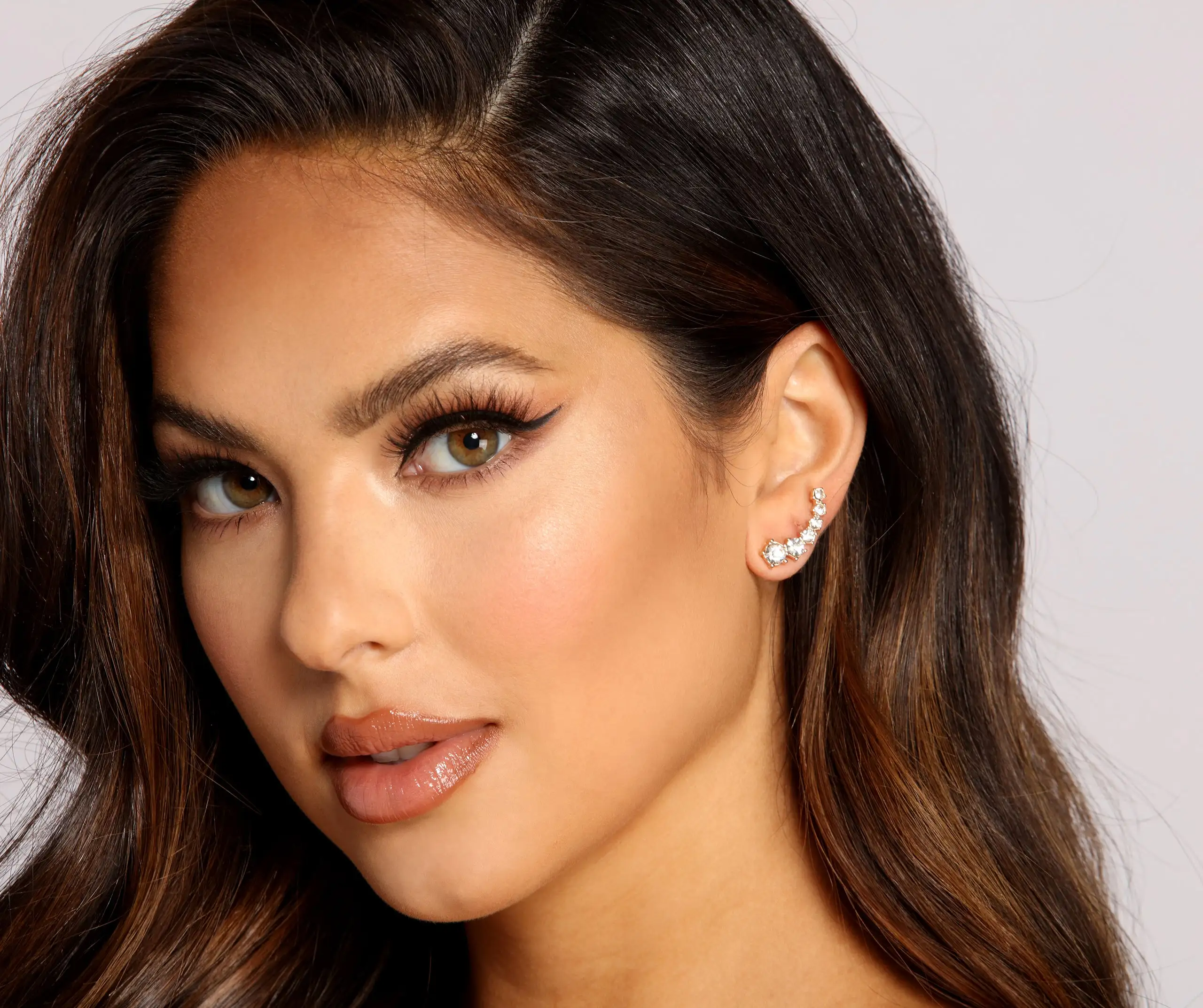 Add a hint of shine with earrings to dress up your casual looks! The studs feature a crawler design and a single row of 6 rhinestones. Complete your look with