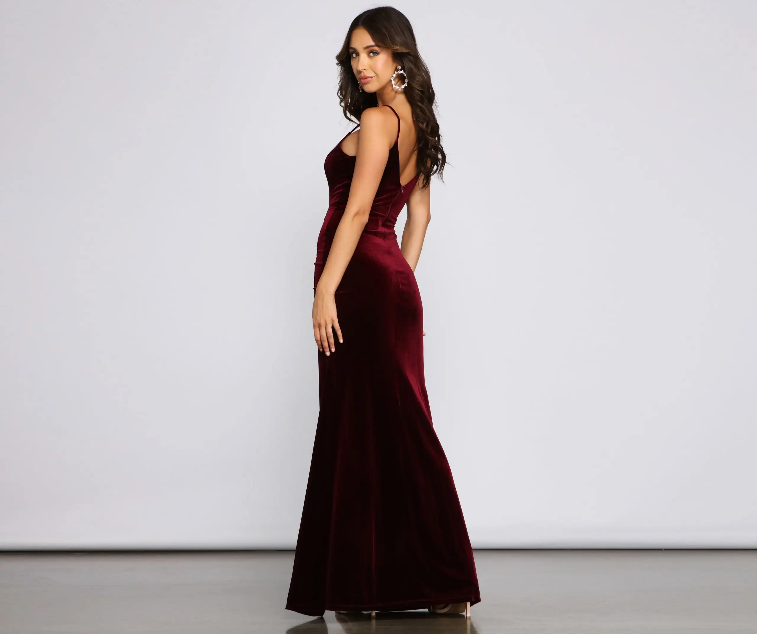 Have a major chic moment in the stylish and stunning Ava velvet formal dress! She features a sleeveless deep V-neckline, spaghetti straps, a high waist seam, ruched detailing, and a floor-length mermaid silhouette with a thigh-high front slit. Complete the look with