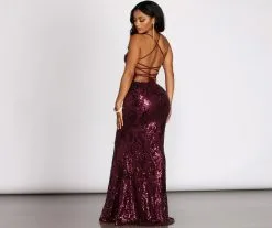 Enchant and allure them all in our unforgettable Avah dress! She features an all over ivory hue, a sleeveless bodice, a plunging V neckline, padded cups and wide tank-like straps that lead to a a double row of straps. Her slim fit bodice leads to a curve hugging mermaid silhouette accented with vertical seams to create an hourglass illusion. She is composed of a lined woven bocule fabric that offers a form hugging fit with a moderate stretch. Includes a smooth knit lining and back zipper closure.