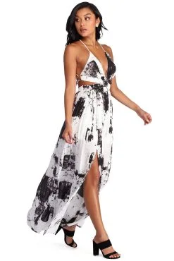 This botanical print dress features a square ruffled neckline, elastic ruffle straps and a straight bodice. The backing of the dress has a hidden zipper andย stretch smock detailing.This piece has a dark toned floral print and is mid-length with a smooth inner lining and a side slit.It is composed of a sheer chiffon-like material that offers a relaxed fit with minimal stretch. On a stroll through the park or a gals brunch date, this dress is bound to have heads turning!