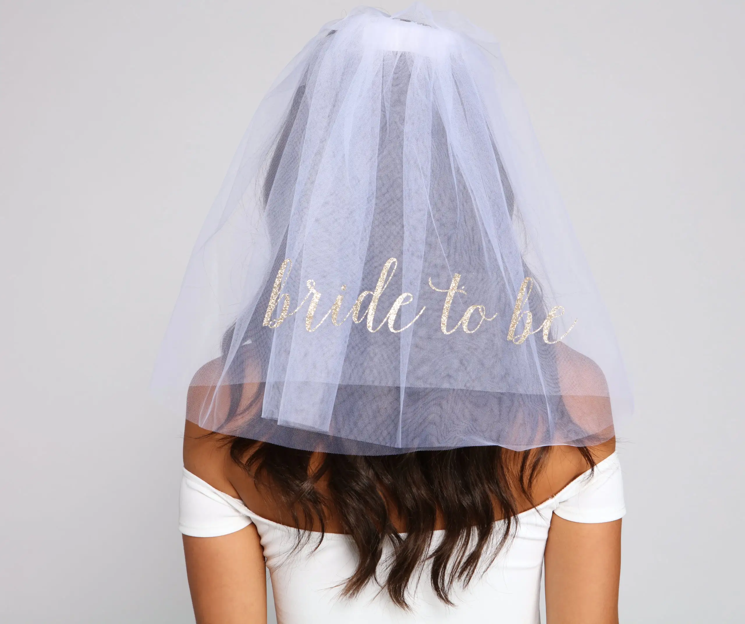 Celebrate the bride to be with a veil to match her glowing happiness! The veil features a headband, layers of sheer tulle, and glitter script that reads: “Bride To Be”. Complete look with a