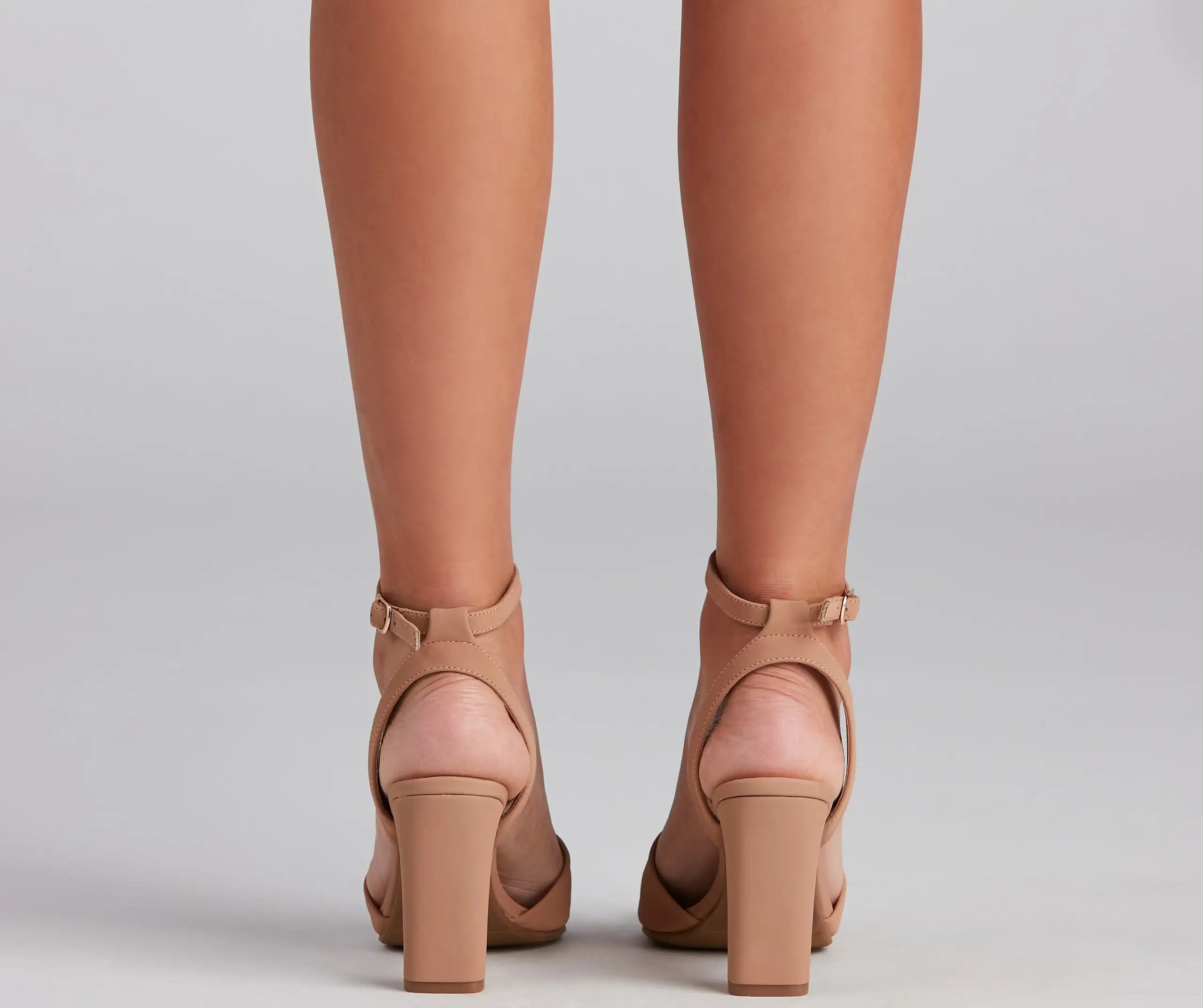 Business or pleasure? These block heels will keep you stylish beyond 9 to 5! They feature a square toe, wide toe strap, and an adjustable buckle ankle strap on nubuck material. Complete the look in a sassy