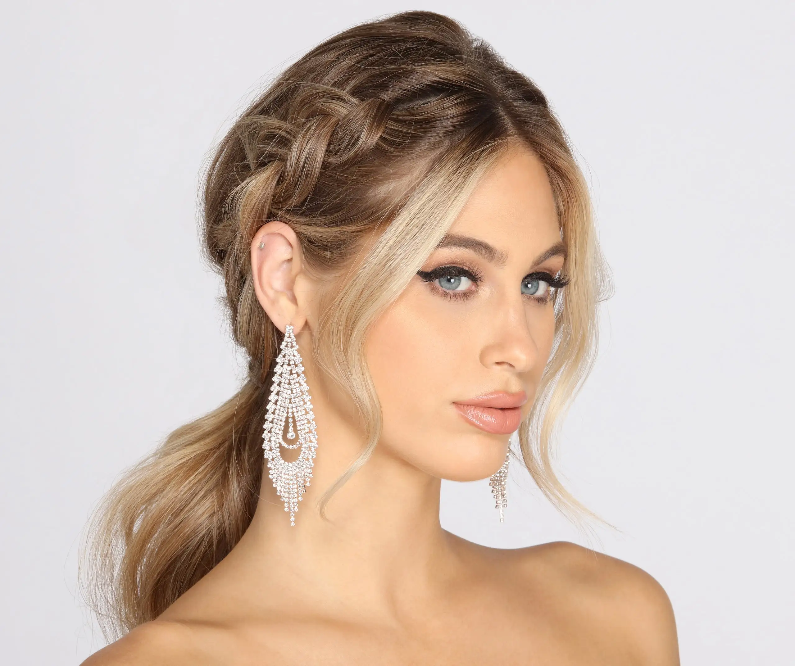Add a soft touch of romance to your special night by adding in a pair of glimmering rhinestone duster earrings!