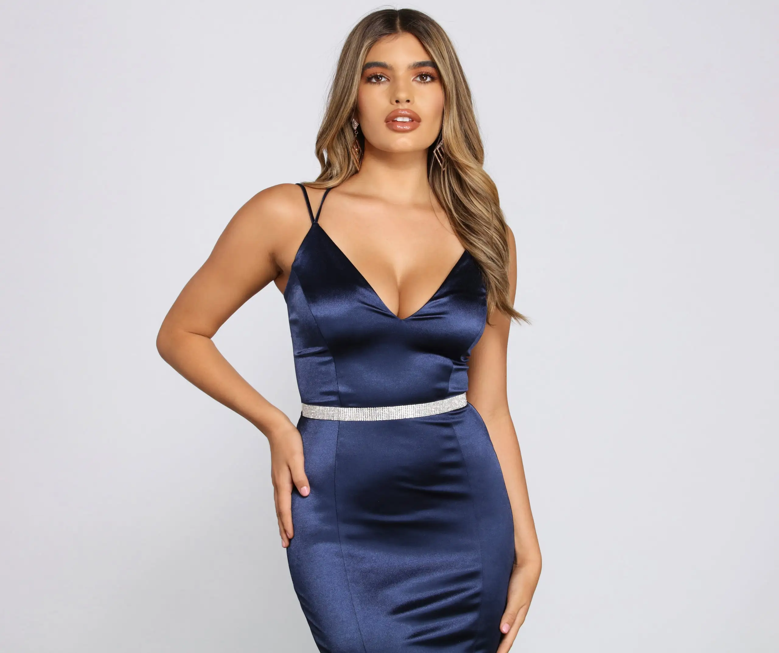Cinch your look with a rhinestone belt that brings the glitz and glam! The belt features a multi-row design of mini rhinestones. Complete look with a