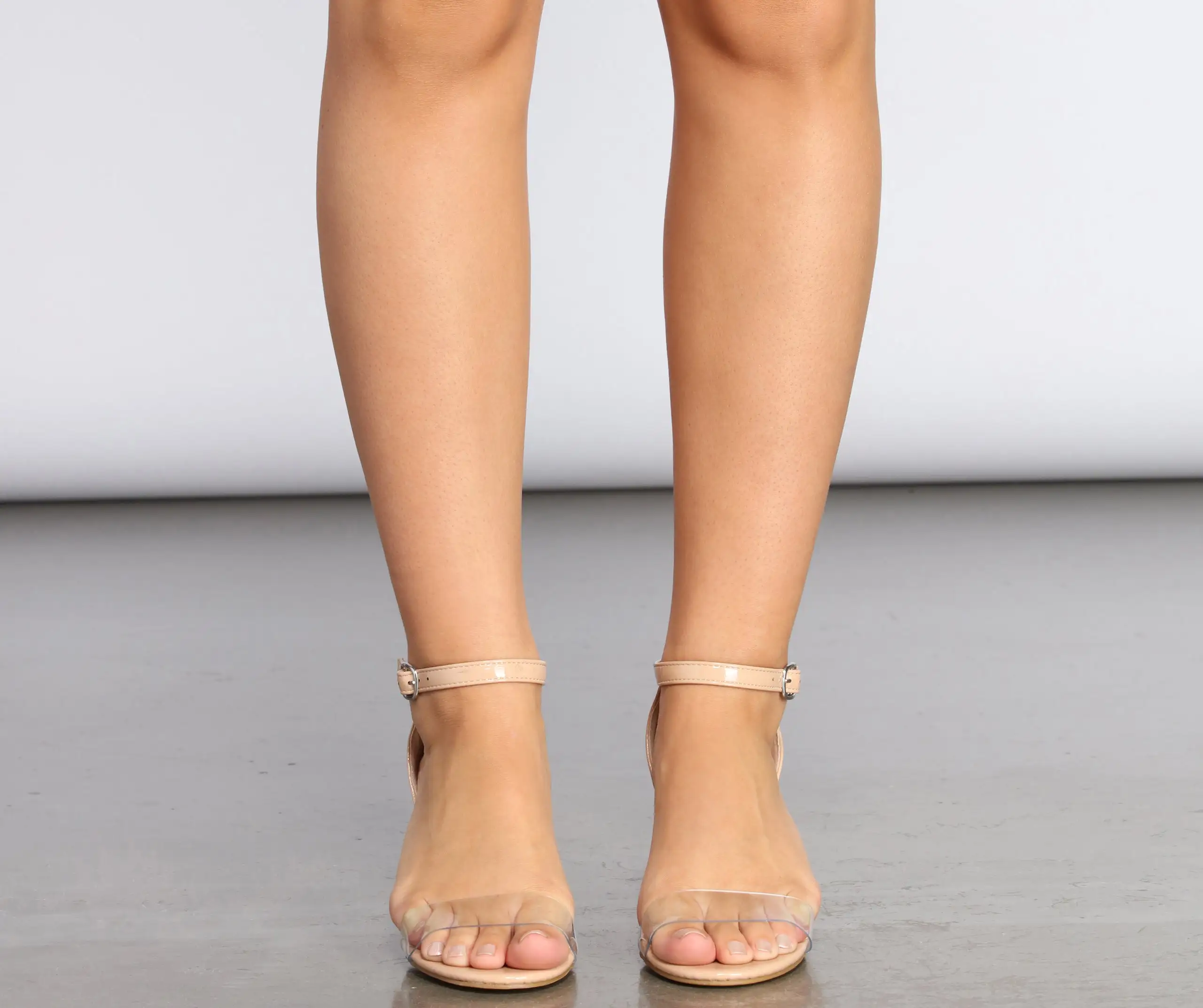 Need a little pick-me-up? Then grab these gotta-have patent sandals. They feature a slim, adjustable ankle strap with silver-tone buckle, a stabilizing medium-short block heel, and a clear PVC strap at toe bed. Shoes are made from a faux patent leather with a faux leather insole.