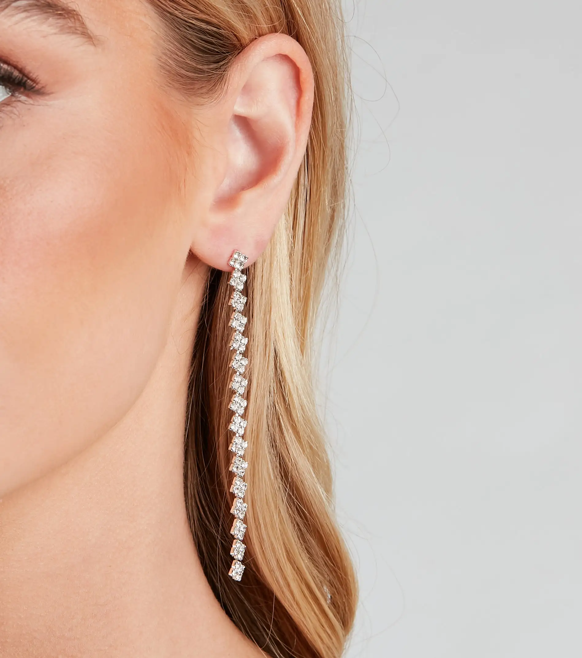 Clearly chic and glitzy, accessorize your look in these long rhinestone earrings featuring a linear design and a post-back closure. Perfect for styling with a sleek