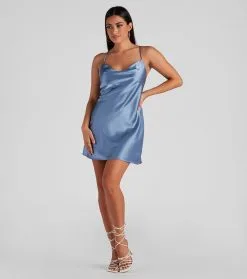 Cross your heart and make your gorgeous goal come true! Stun at every party in this satin mini dress featuring a sleeveless v-neckline, tank-style straps, a criss-cross cutout bust, a bodycon silhouette, and a flirty hem slit. Complete the look in