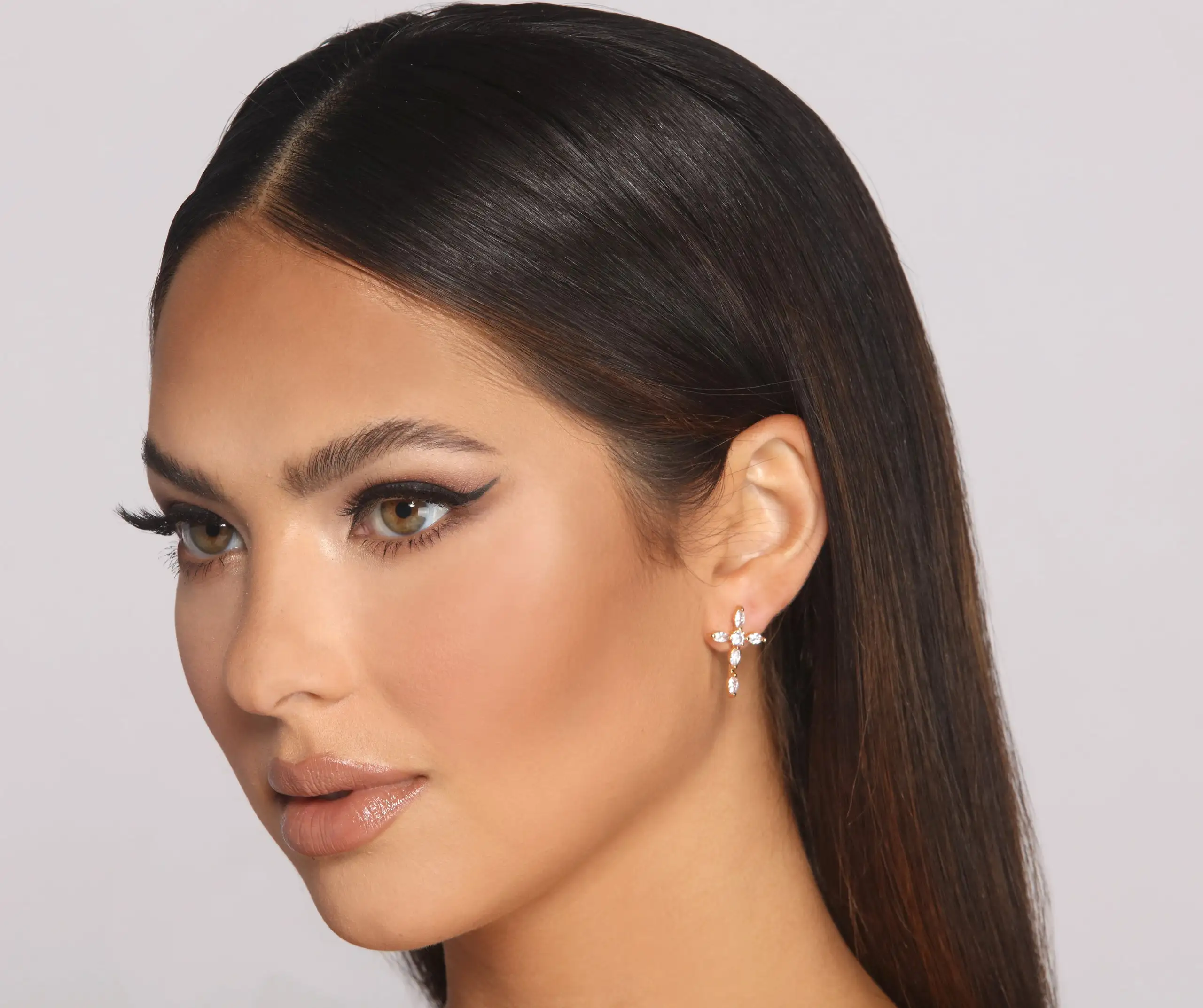 Stay stunning in charm earrings that keep your look on-point! The earrings feature cubic zirconia gemstones and a cross charm design. Complete your look with a statement blouse and high waist skinny jeans.