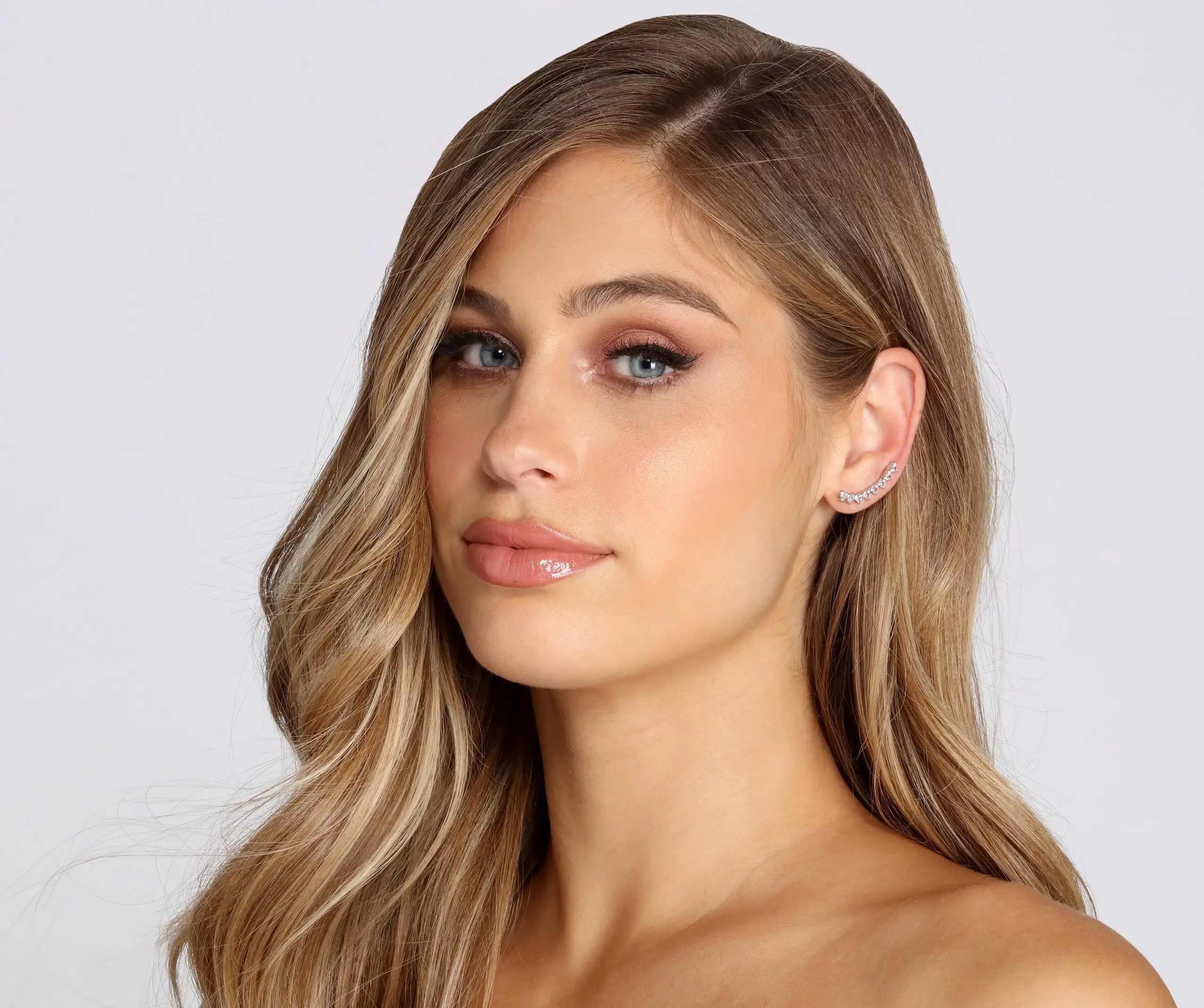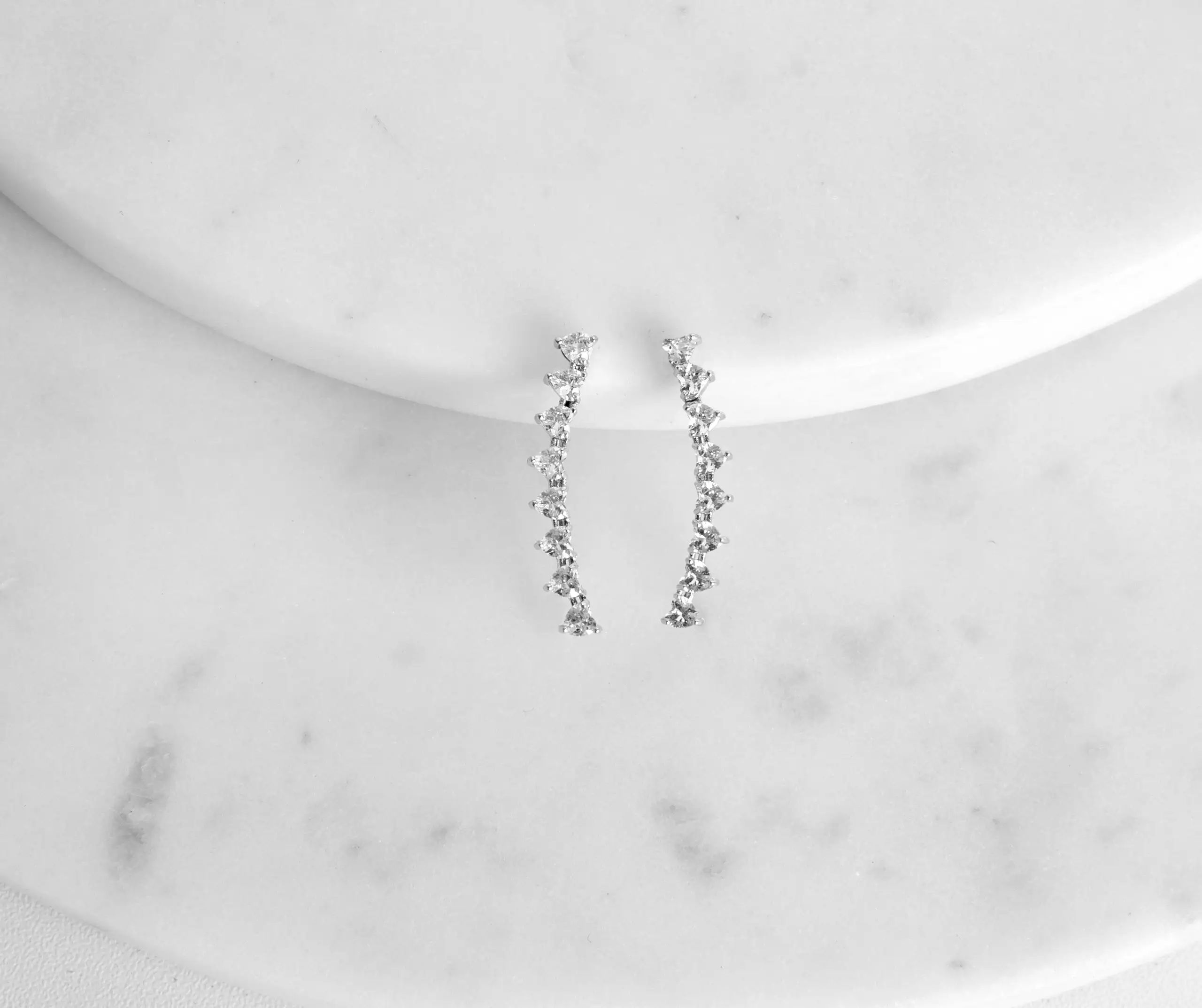 This set of ear crawlers are dainty yet detailed, with heart shaped cubic zirconia stones, as well as a curved body that bend with your ear. The earrings have a fish hook closure.