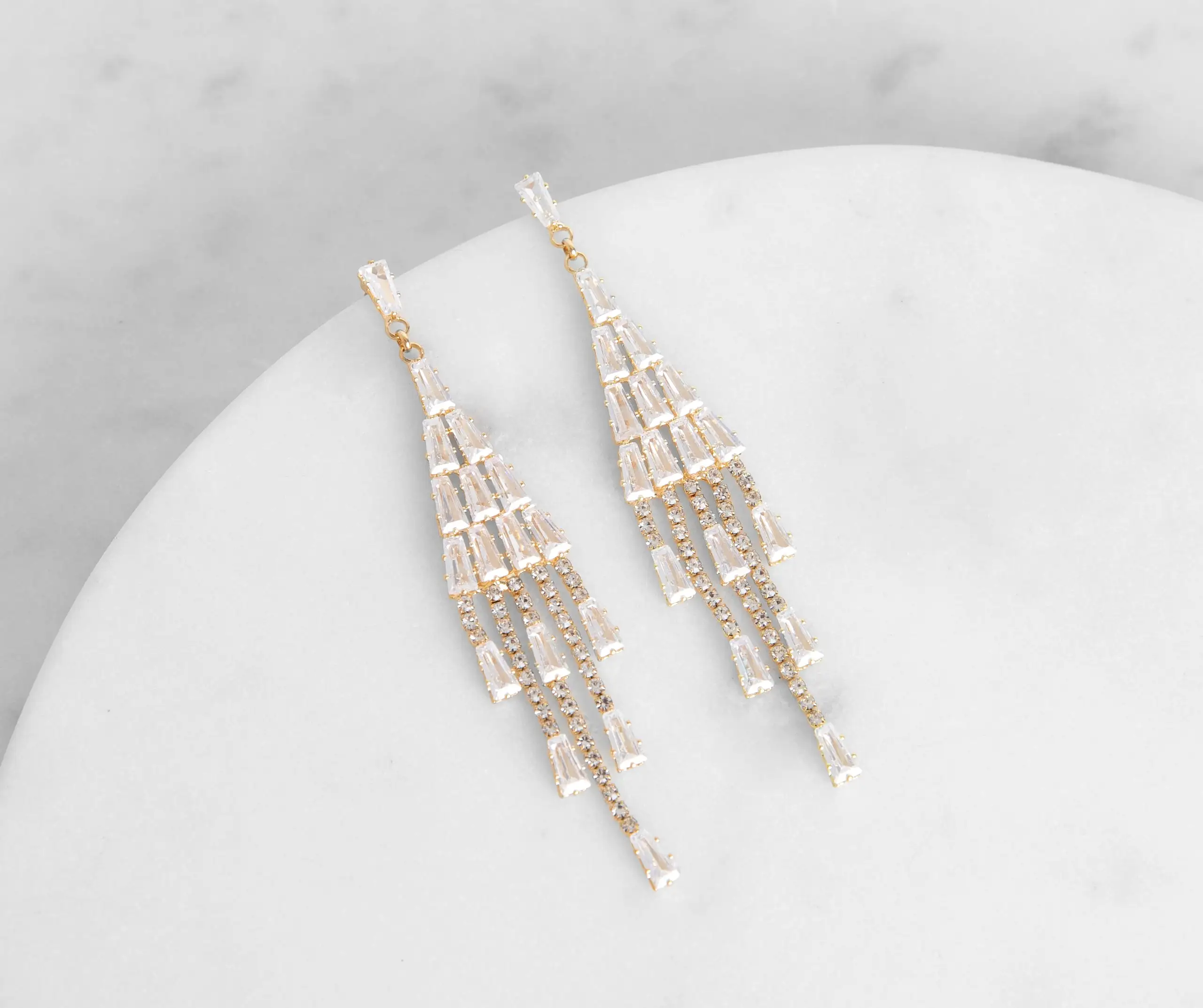 Give yourself a darling finish with baguette chandelier earrings! The chic design makes them work easily with so many different looks!