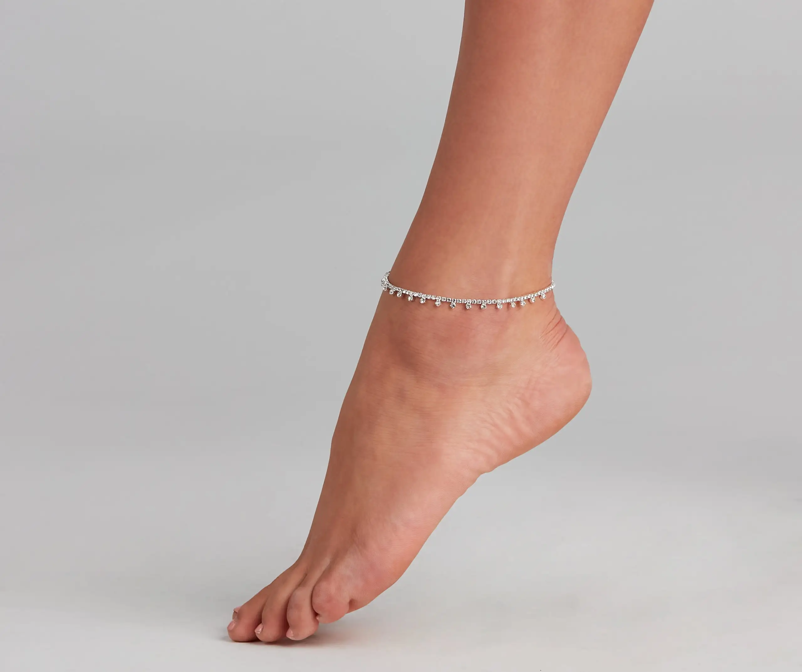Gleem from your feet in this elegant rhinestone anklet featuring a dainty charm design with an adjustable chain and a lobster clasp closure. Complete the look in a chic
