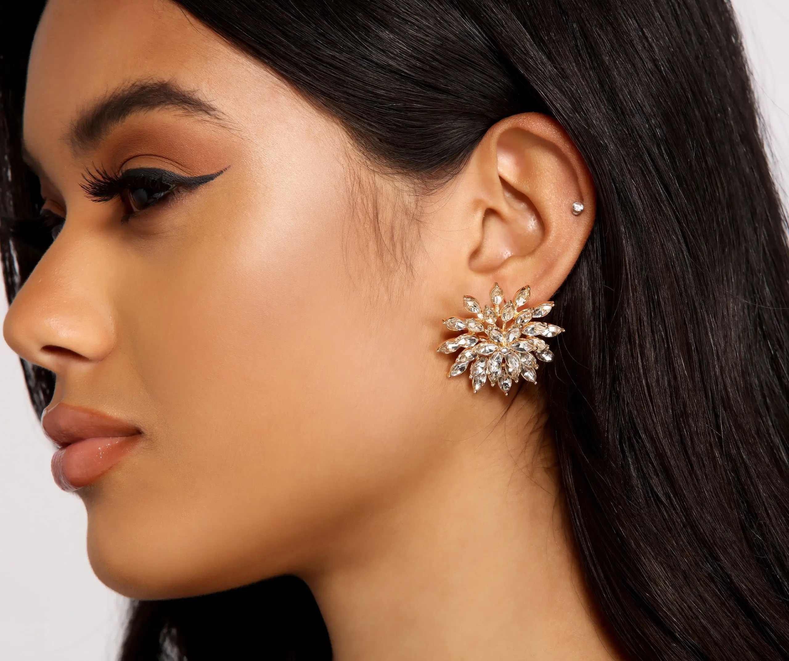 These gemstone flower stud earrings will glam up your everyday ‘fit! Featuring an intricate flower design of faceted gemstones, you can take these gorgeous earrings from the office to happy hour. Pair with some