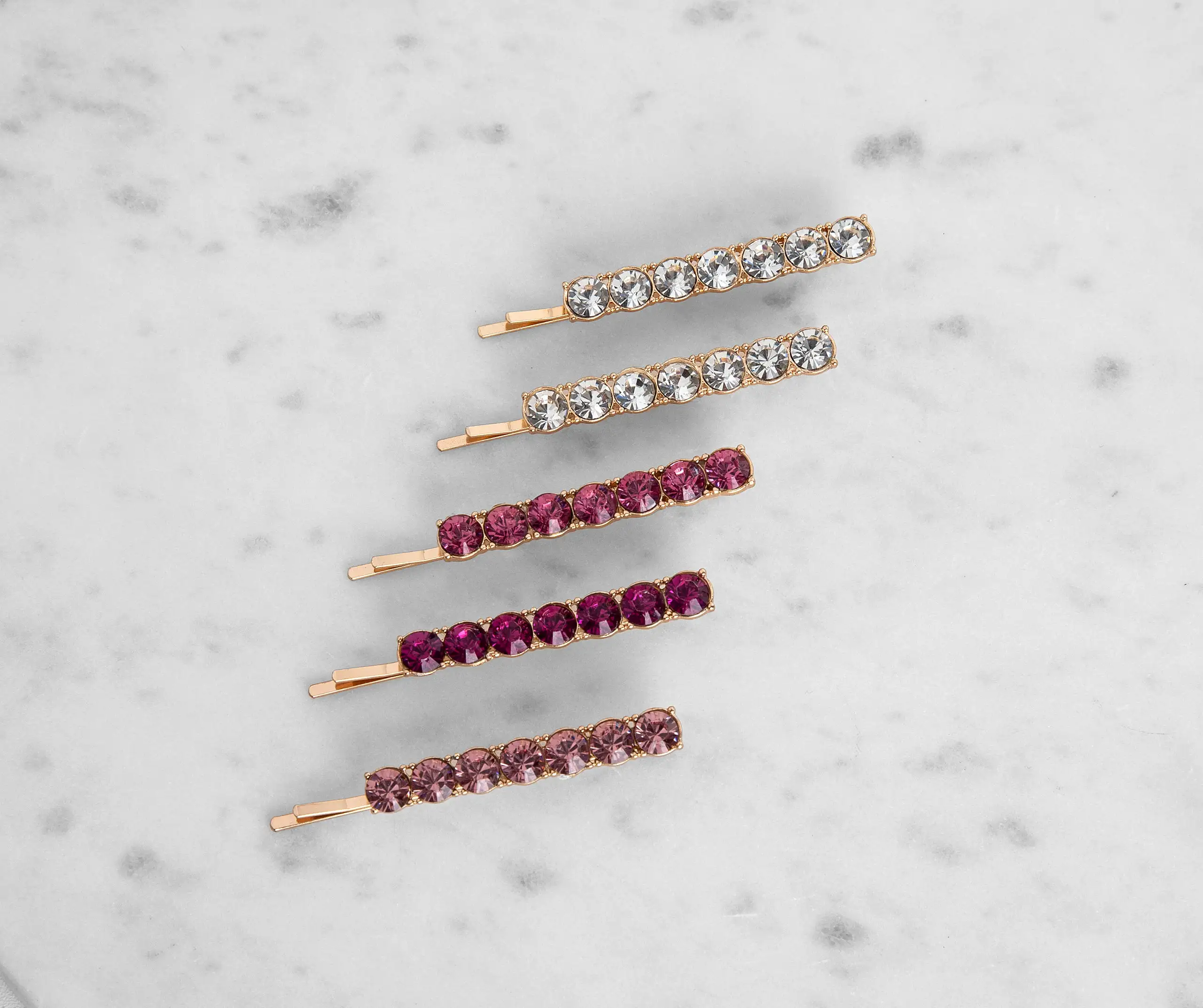 Add some glam to your pretty tresses with this five pack of ombre stone bobby pins!