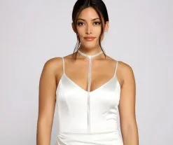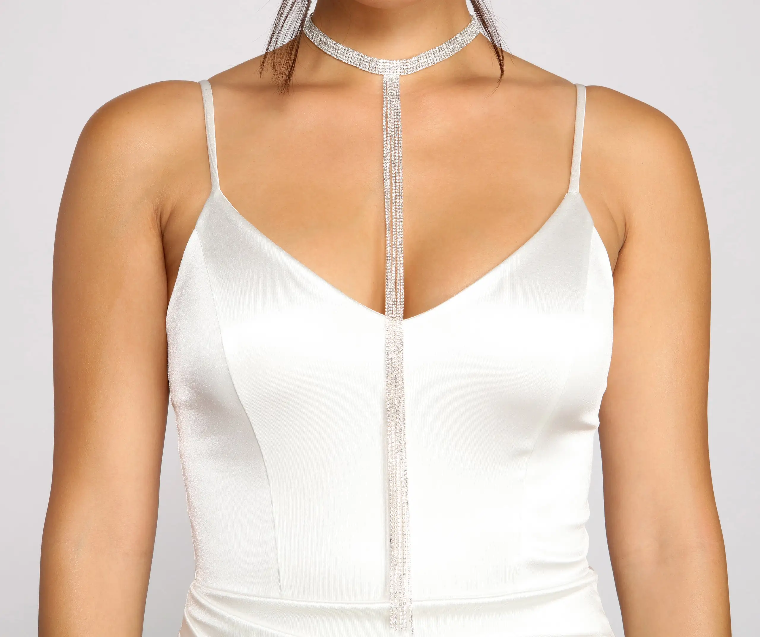 Liven up your look with a choker that sparkles from all your best angles. The choker features a five-row design with mini rhinestones and a fringe detail. Complete look with a formal