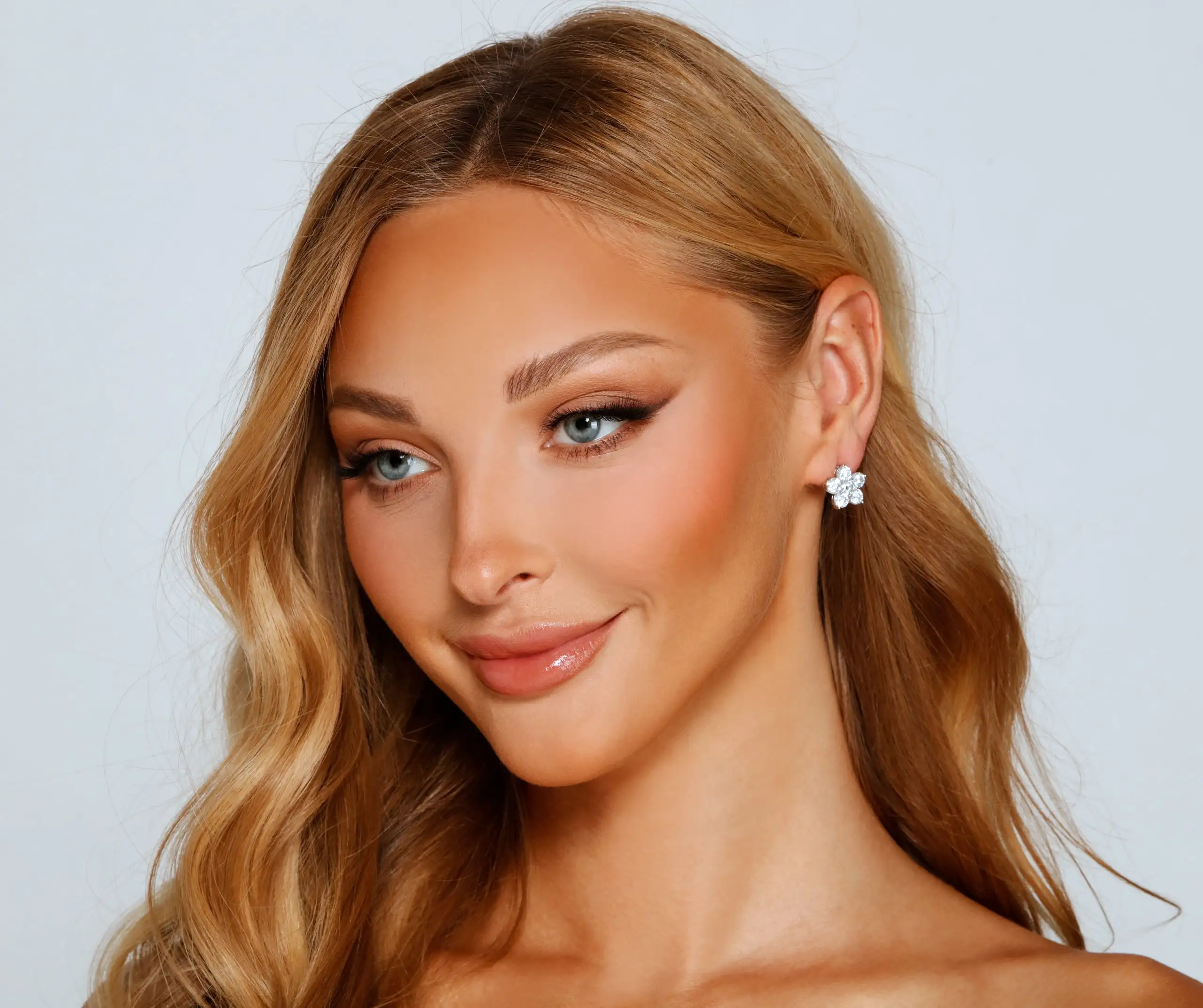 Bloom it out with glam earrings that complete your look! The earrings feature a flower design, cubic zirconia stones, and a post-back closure. Complete look with a