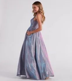 The drama’s in the details of the glamorous Frida satin dress! She features a sleeveless, cowl neckline, adjustable spaghetti straps, high waist seam, and a flirty ruffled front slit that leads to her floor-length hem. The formal dress is composed of a luxe satin-lined fabric with a moderate stretch. Complete your dressy look with a chic rhinestone