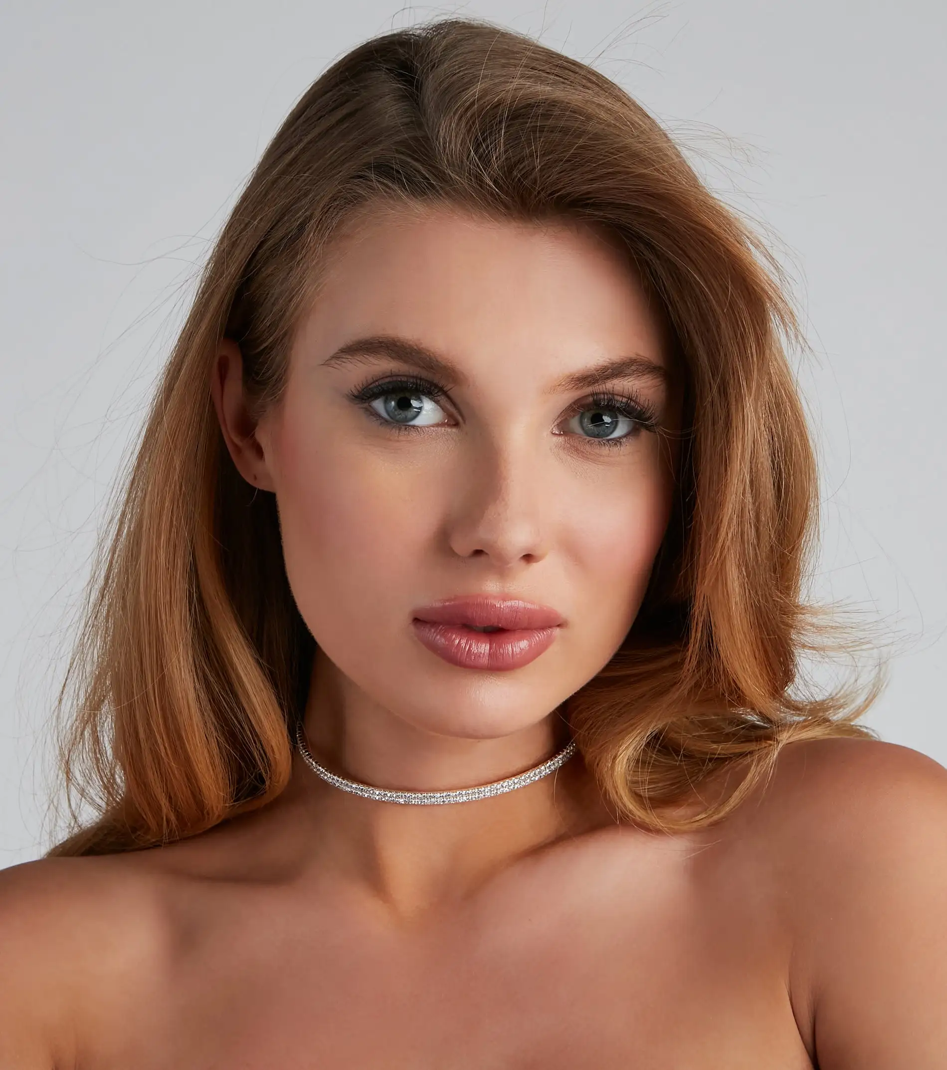 Your future is looking so glam with this rhinestone choker! It features a delicate two-row design on memory wire and a lobster clasp closure.