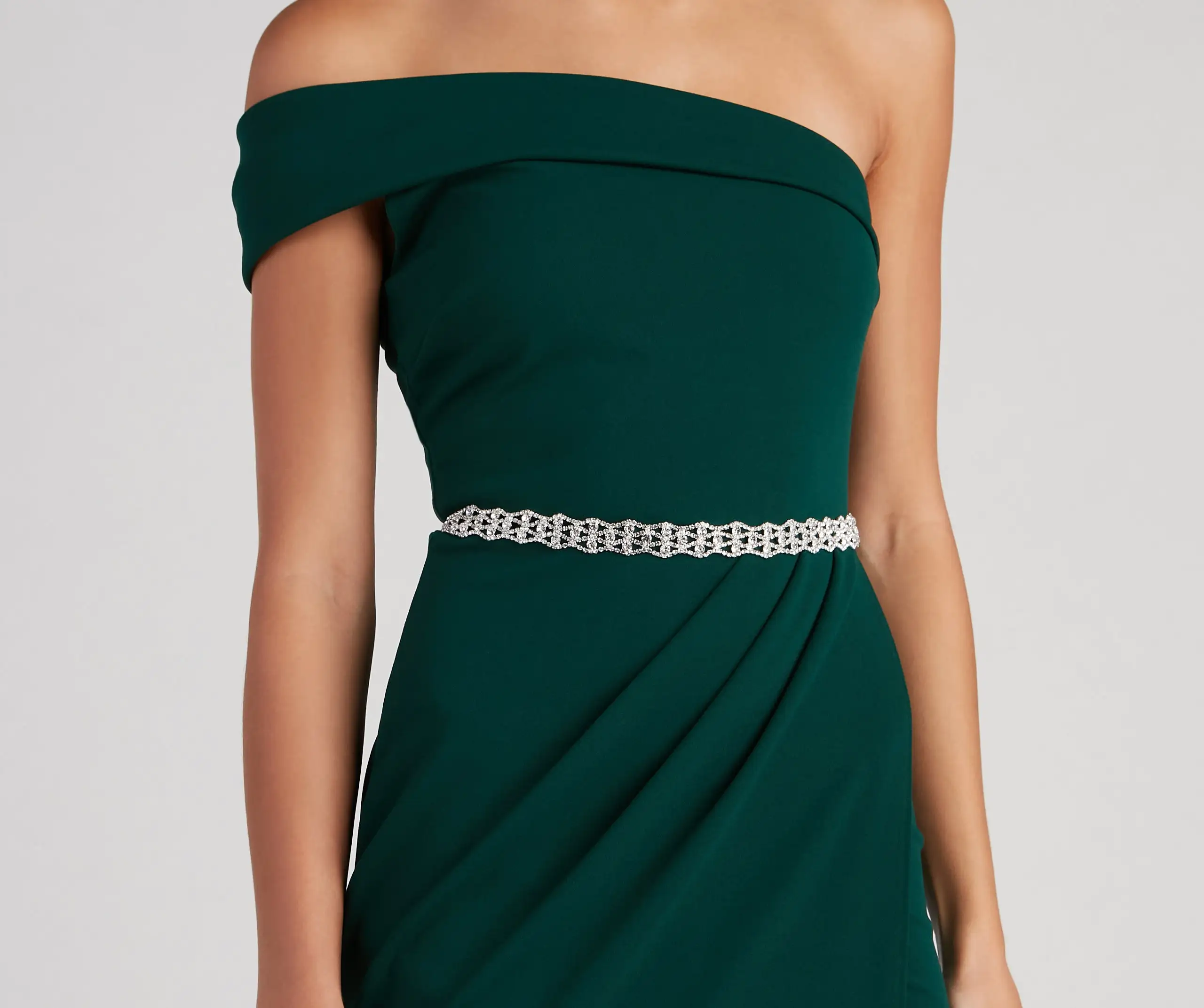 Bring on the glitzy and gorgeous vibes with this embellished belt. It features a stunning intricate rhinestone design that will give your formal dress the perfect sparkle. Complete the look with a
