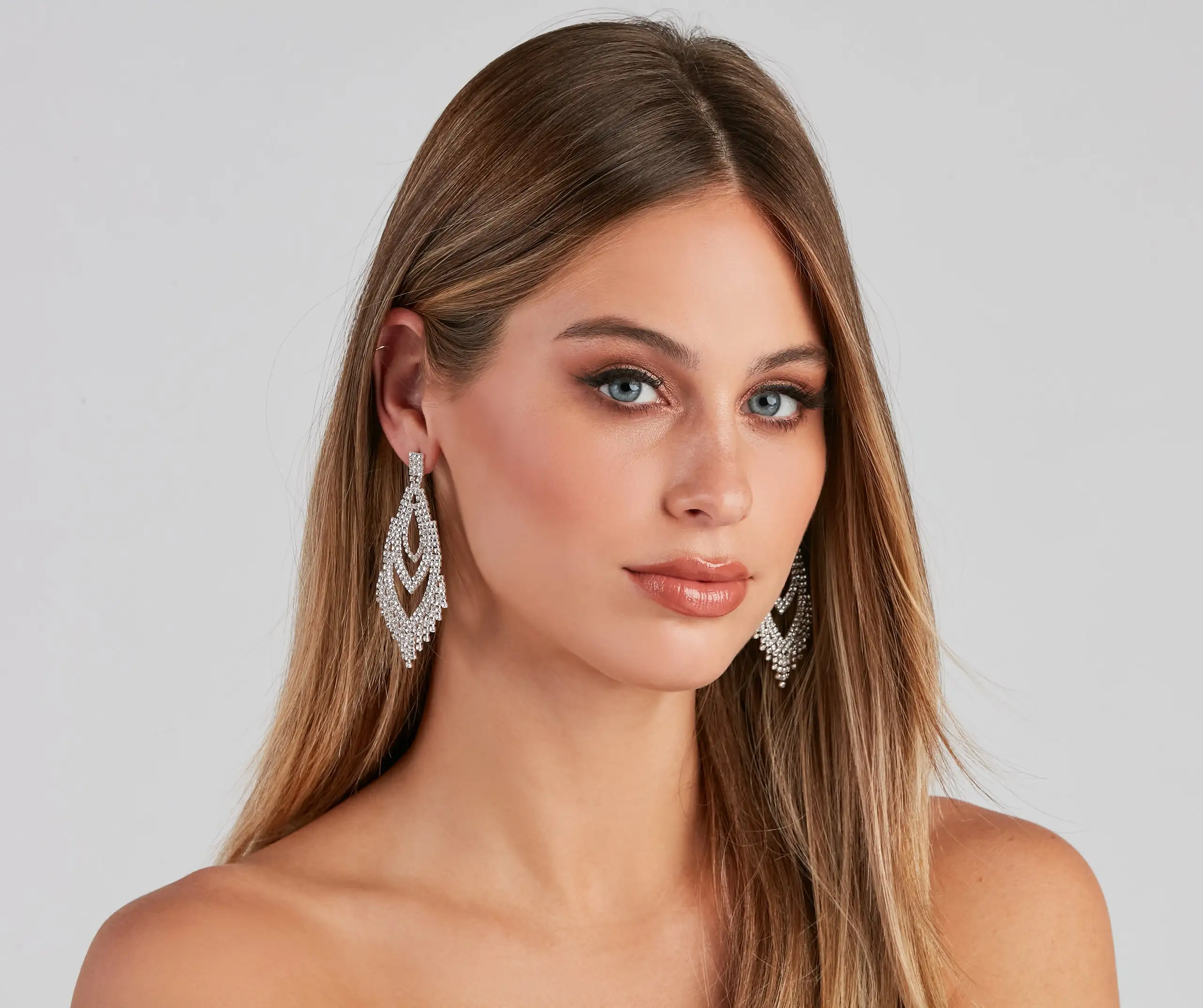 Make every head turn when you walk by in these earrings featuring a statement design with rhinestones and fringe trim. Complete with a post-back closure. Style with a