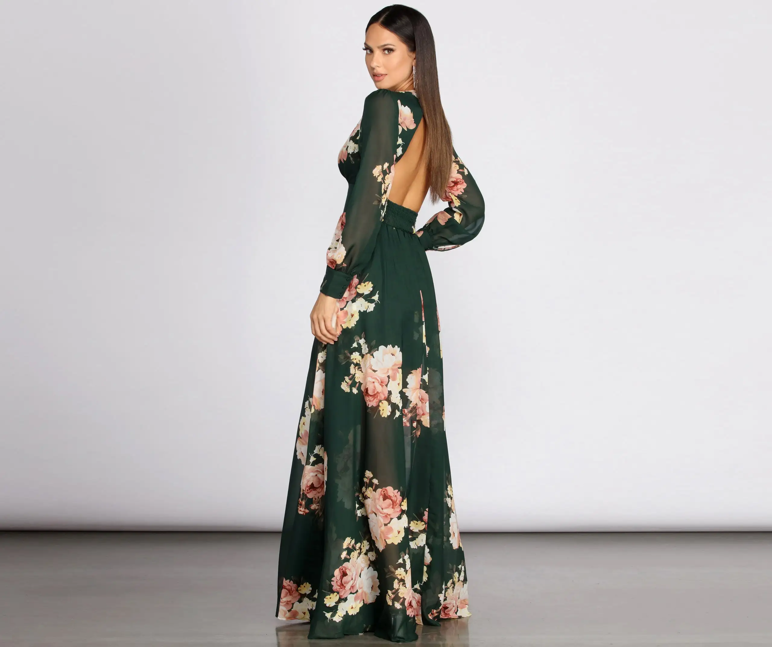 Look fabulous in florals with our beautiful Irina! Her flowy skirt and long sleeves are a dreamy and elegant touch to her form-flattering silhouette.