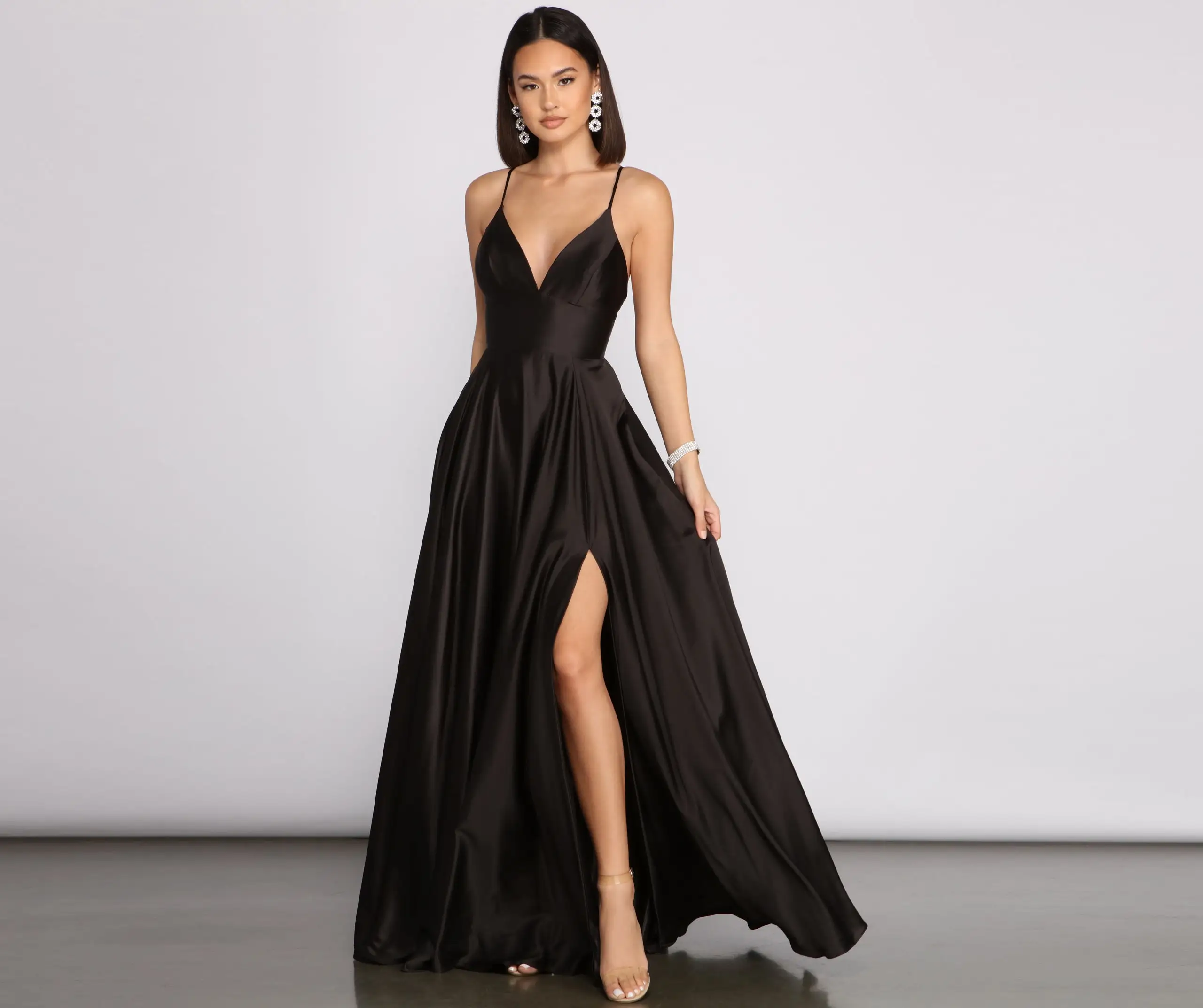 Keep it simply stunning and sophisticated as you make your grand entrance in our Jackie formal dress! Her high slit brings the drama and chic side pockets keep you flawlessly on trend. Complete Jakcie with rhinestone accents and a statement heel to create a memorable look!