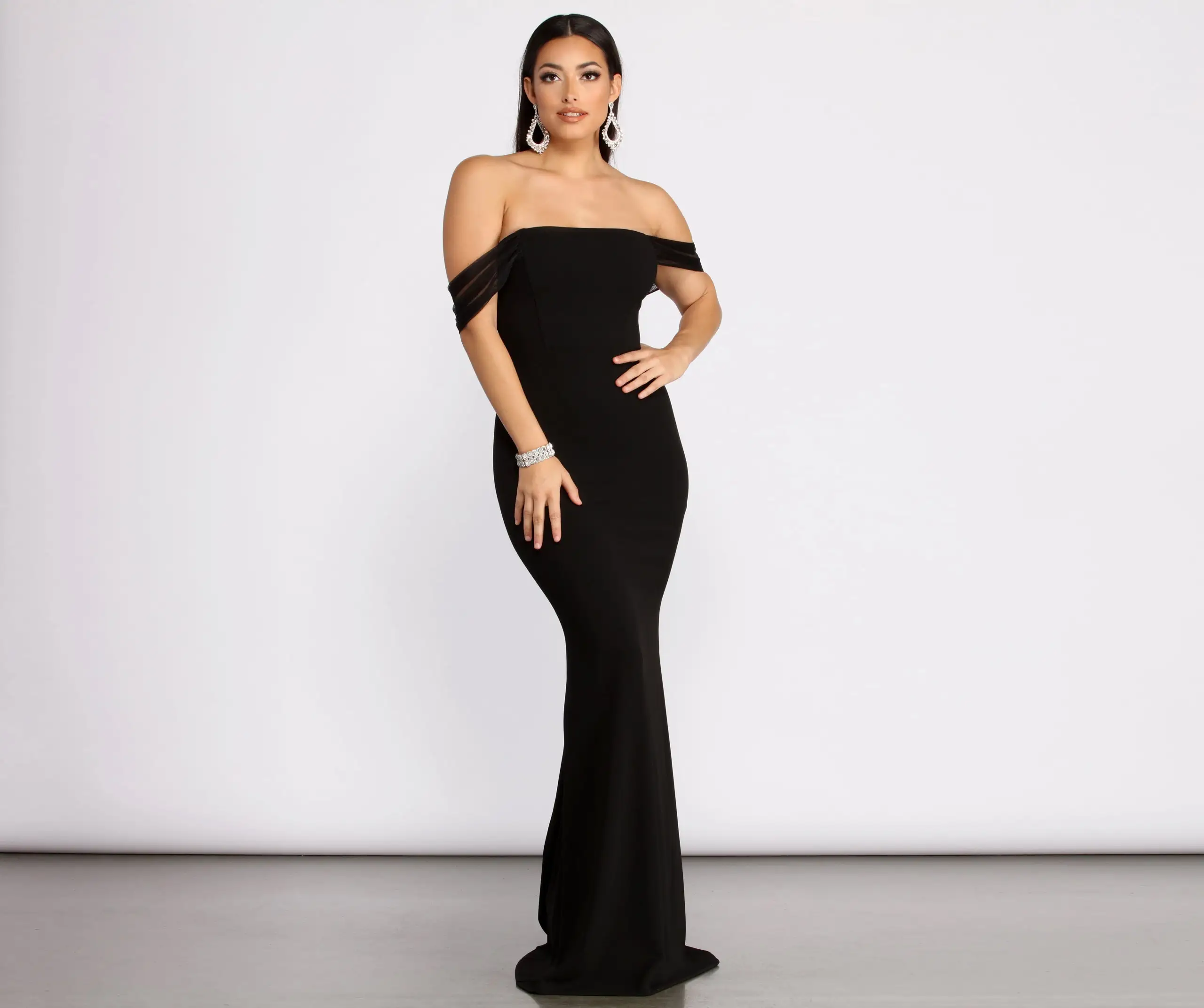 Create an ethereal moment in our breathtaking Kalel formal dress! Put simply her elegance is showcased with her mermaid silhouette and dainty off the shoulder straps to radiate an unforgettable impression!Â