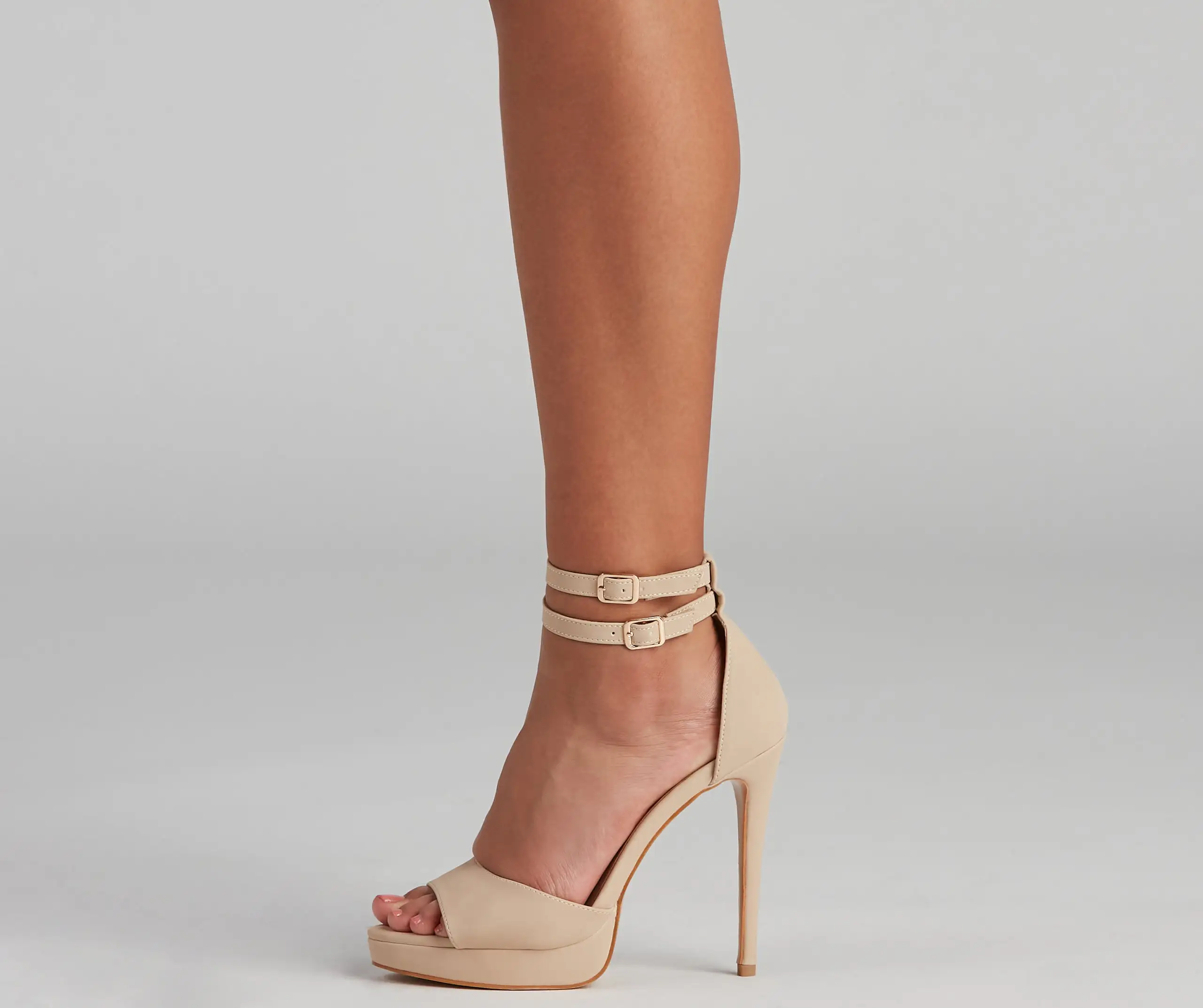 Grab the girls and slip on these sexy stiletto heels for a night on the town! They feature a square toe, platform sole, wide toe strap, and closed ankle with dual adjustable buckle strap closures. Complete the look in a sultry