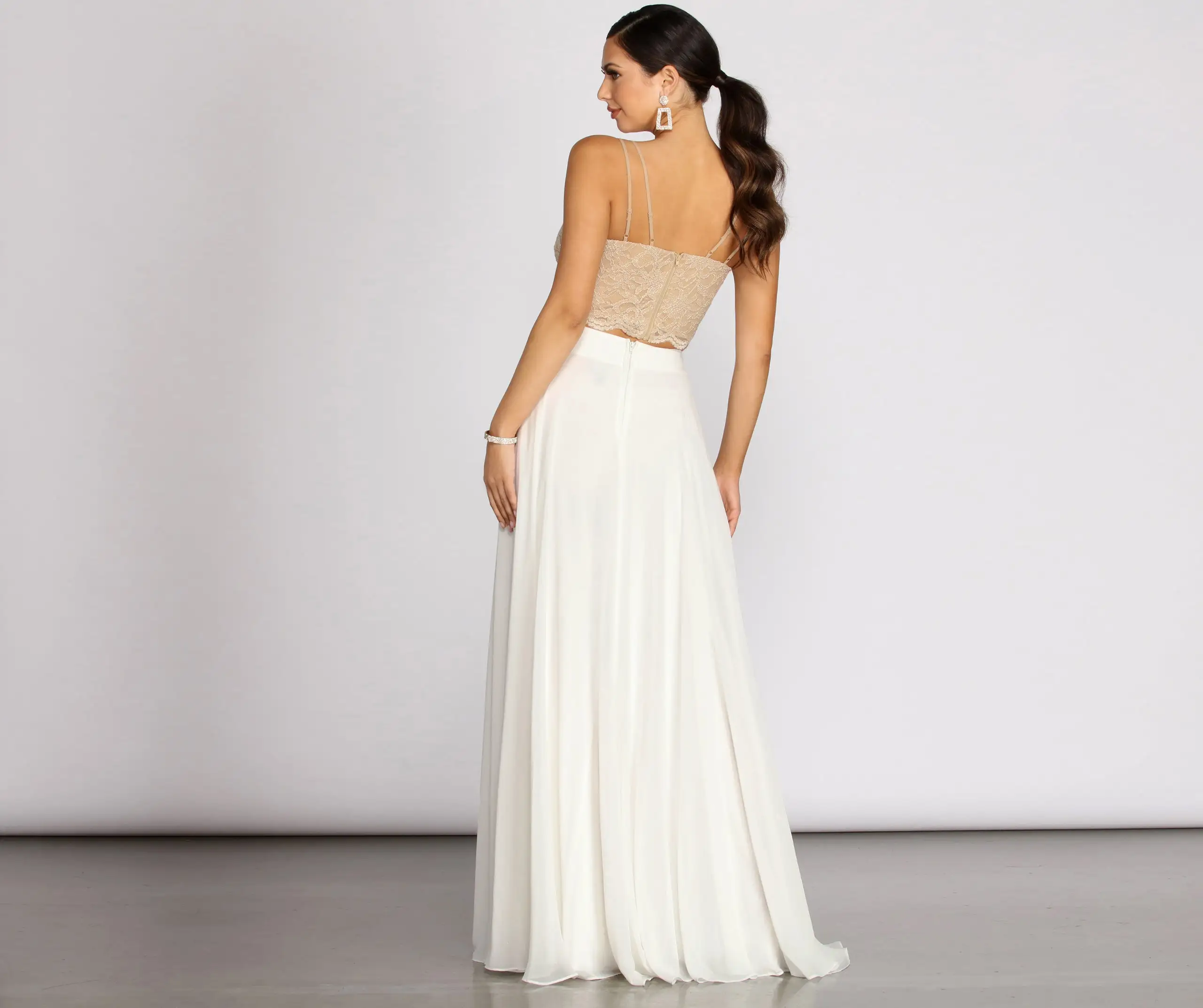 - Back Zip With Hook & Eye Closure