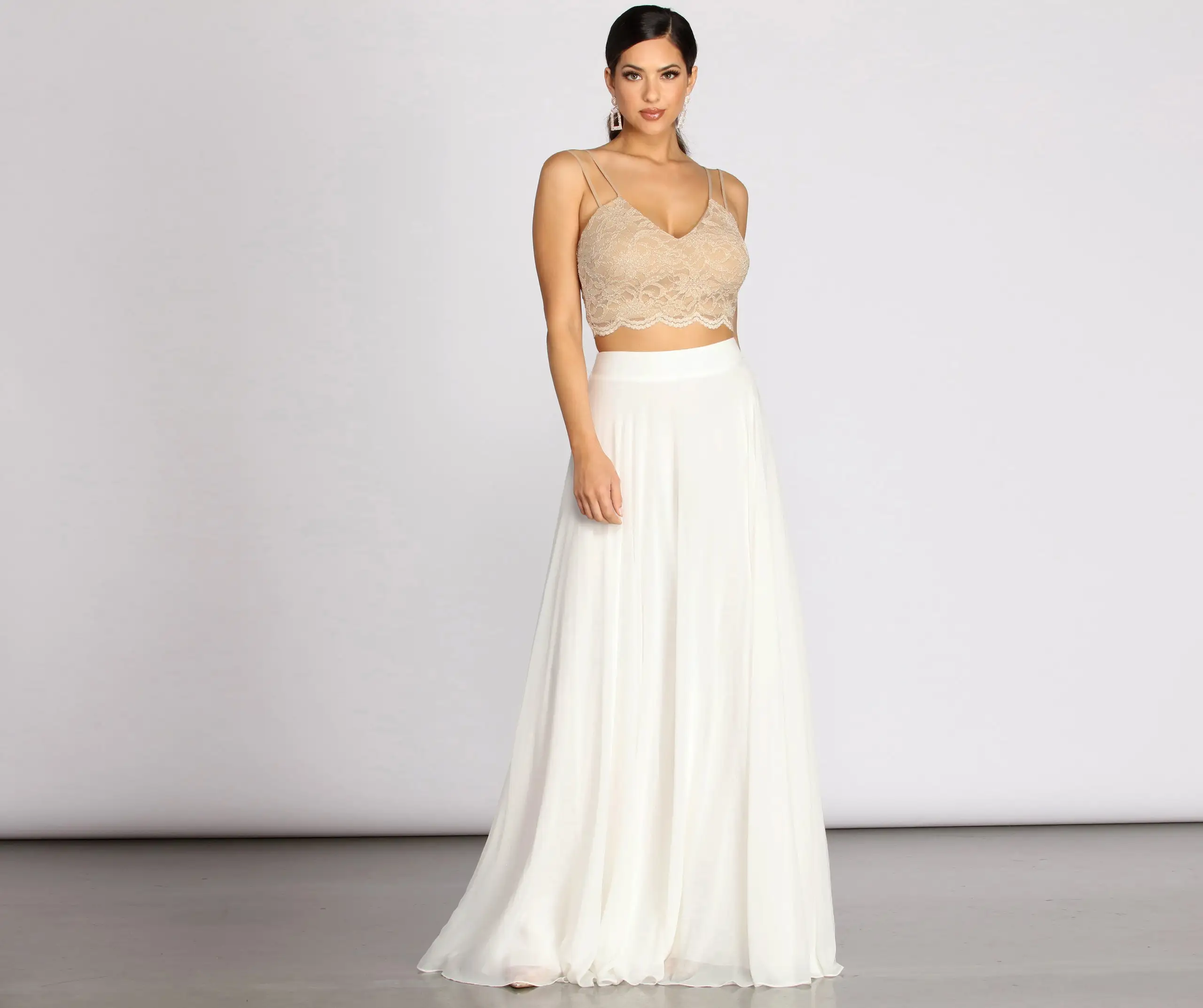 - Glitter Lace Scalloped Cropped Bodice I Plunging V Neckline