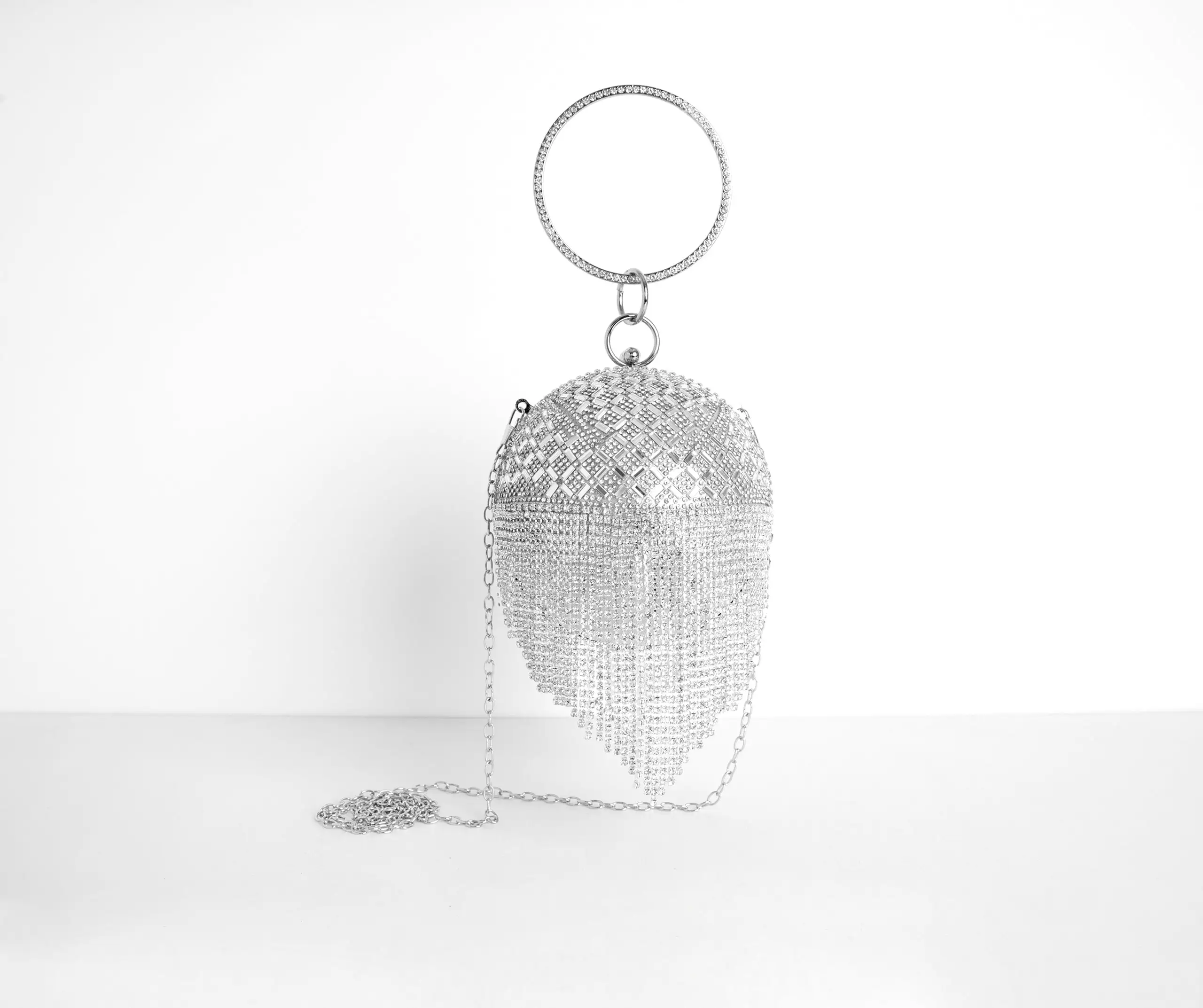 Make the most of your night when you pair your look with this glitzy and eye-catching accessory with cascading rhinestone fringe and a unique design!