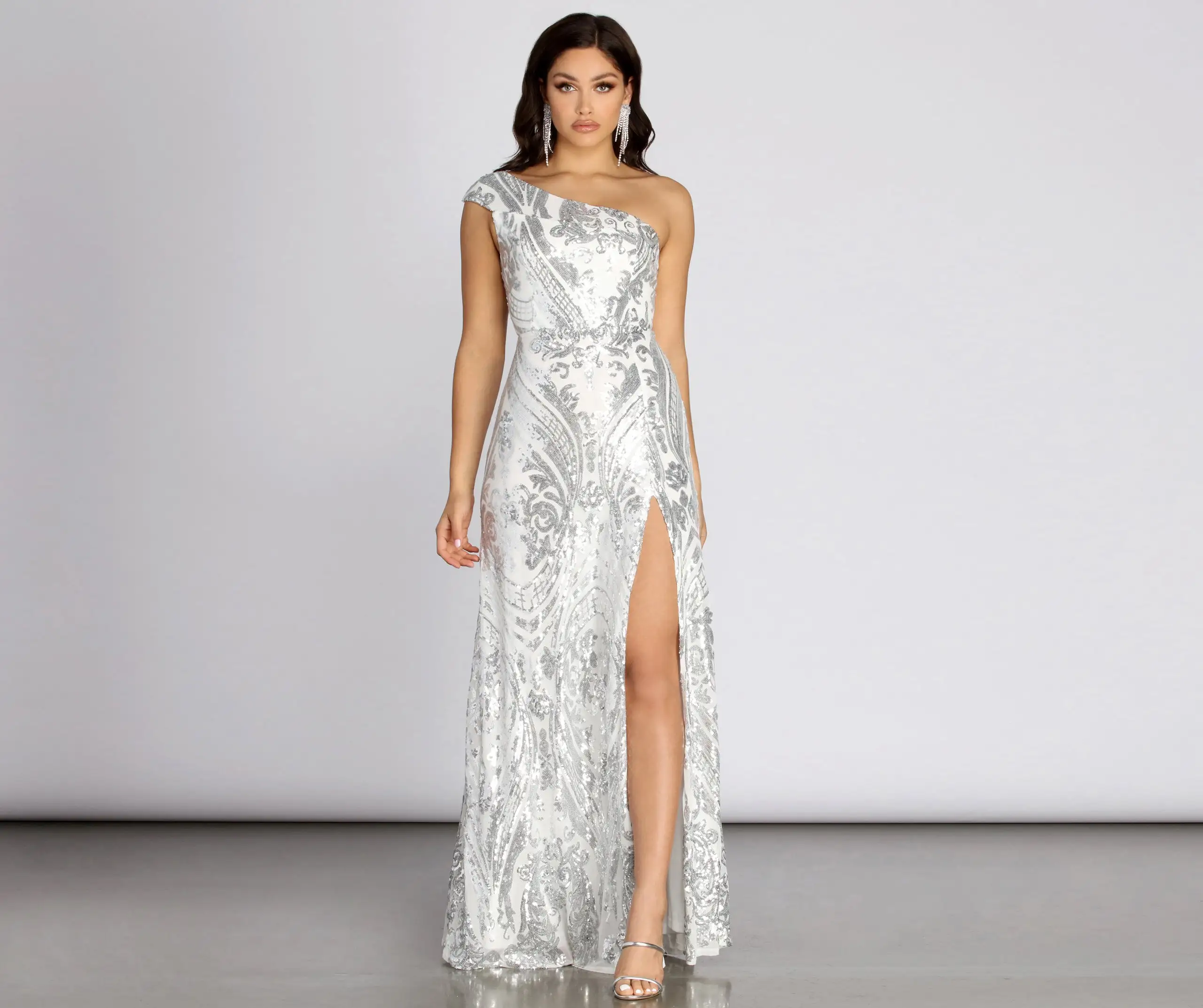 Shine the night away in our eyecatching Melinda! Her sequins will glisten and glow underneath the lights.Â