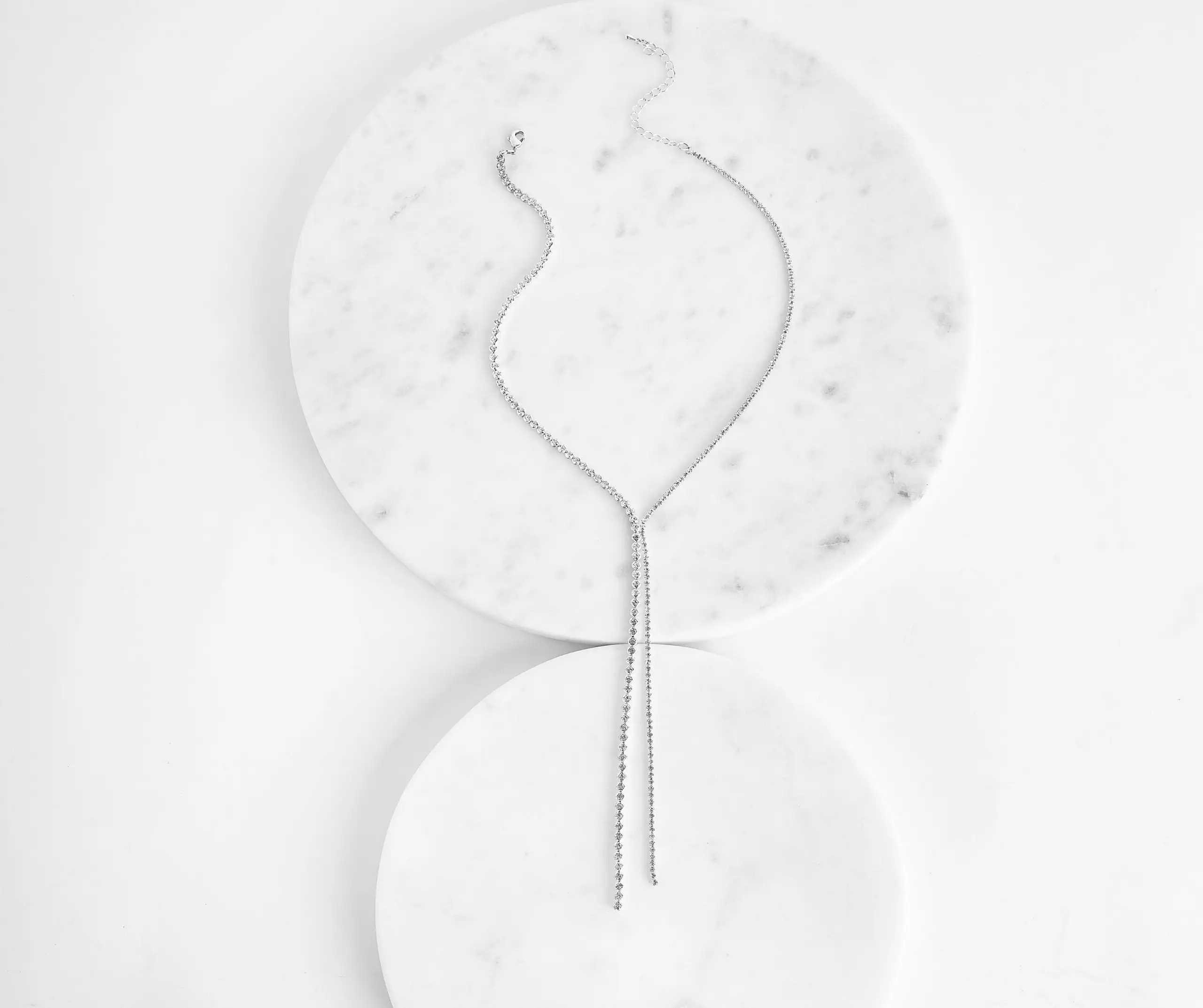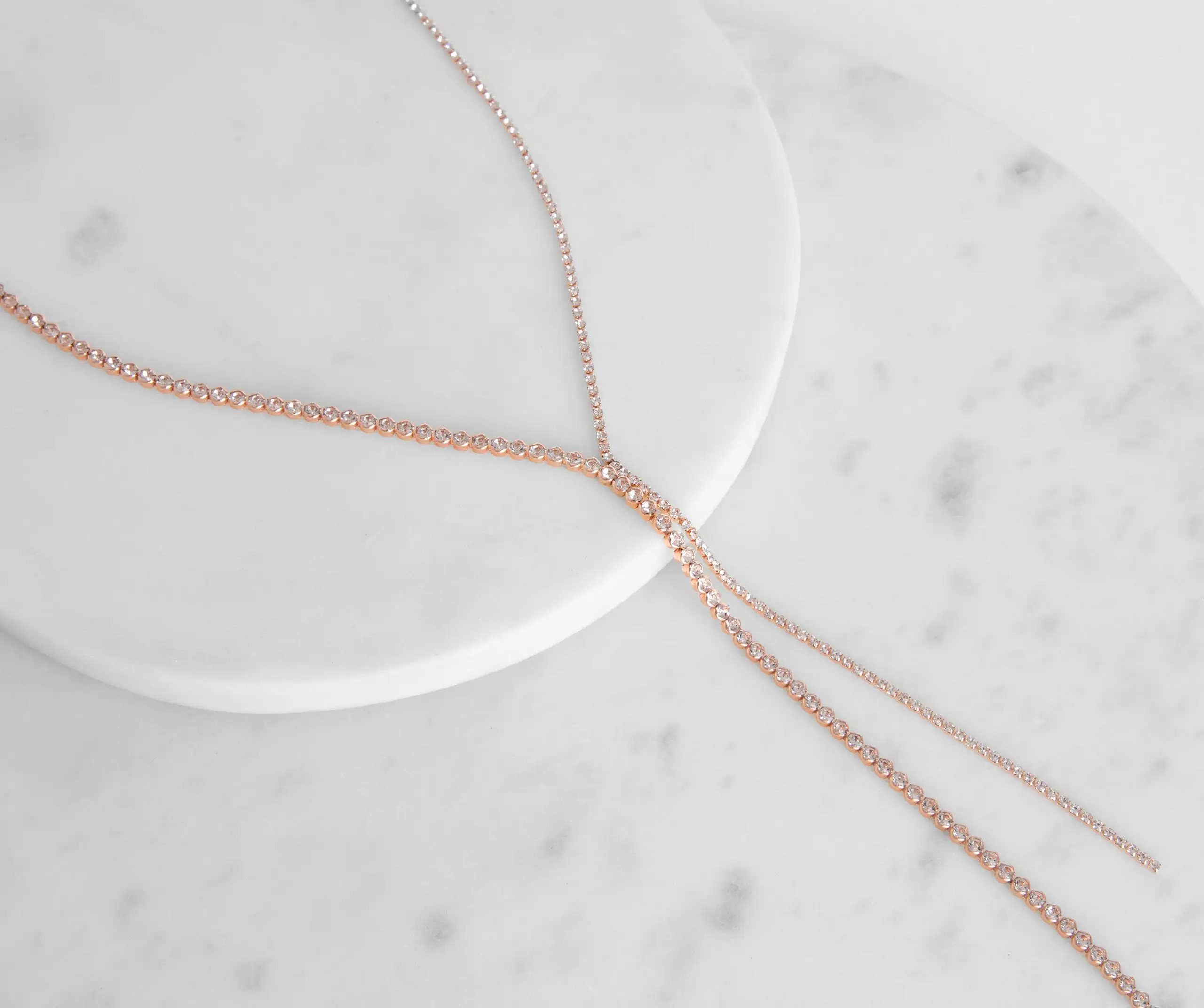 Girl, you’re stuntin’ with that neck full of bling! This necklace features allover rhinestones and a drop chain design. Topped with an extender and lobster clasp closure for the perfect fit.