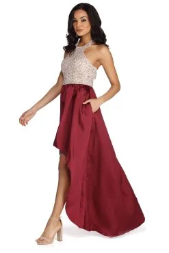 All eyes will be on you in this statement sequined number! This dress features a slanted neckline, single long sleeve with puffs at the shoulder, and a mini length silhouette. The garment is composed of a sequined knit material that offers a form-hugging fit with a moderate amount of stretch.
