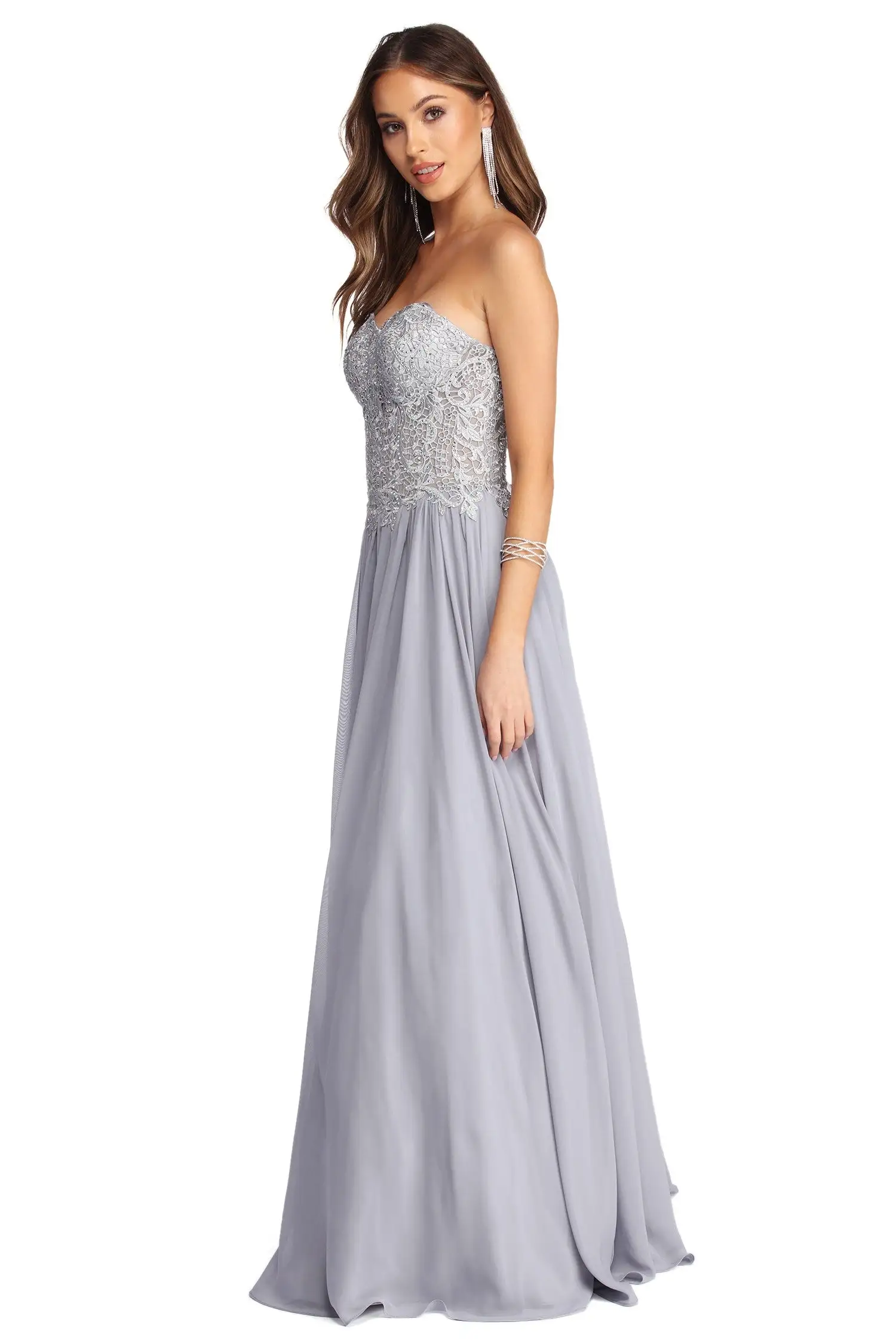 Feel like a princess on your special day! Our Payson does just that. She features a sweetheart neckline, padded cups, a sleeveless bodice that has a lace up detailing at the back, and a wired corset structure that is delicately embroidered with rhinestone accents. Her skirt meets mid high waist and features a ball gown design composed of a chiffon material that offers a lightweight flow. Dress is lined.