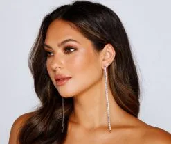 You’ll fall in love with the glamorous chic details of these statement earrings. They feature a two-row fringe design with mini rhinestone embellishment. Style these earrings with a