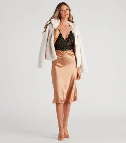 This silky-chic satin midi skirt will elevate your looks and give off a dressier vibe! It features a high-rise waist, a midi-length hem, and a flowy A-line silhouette. The woven satin fabric showcases a gorgeous sheen. Style with a