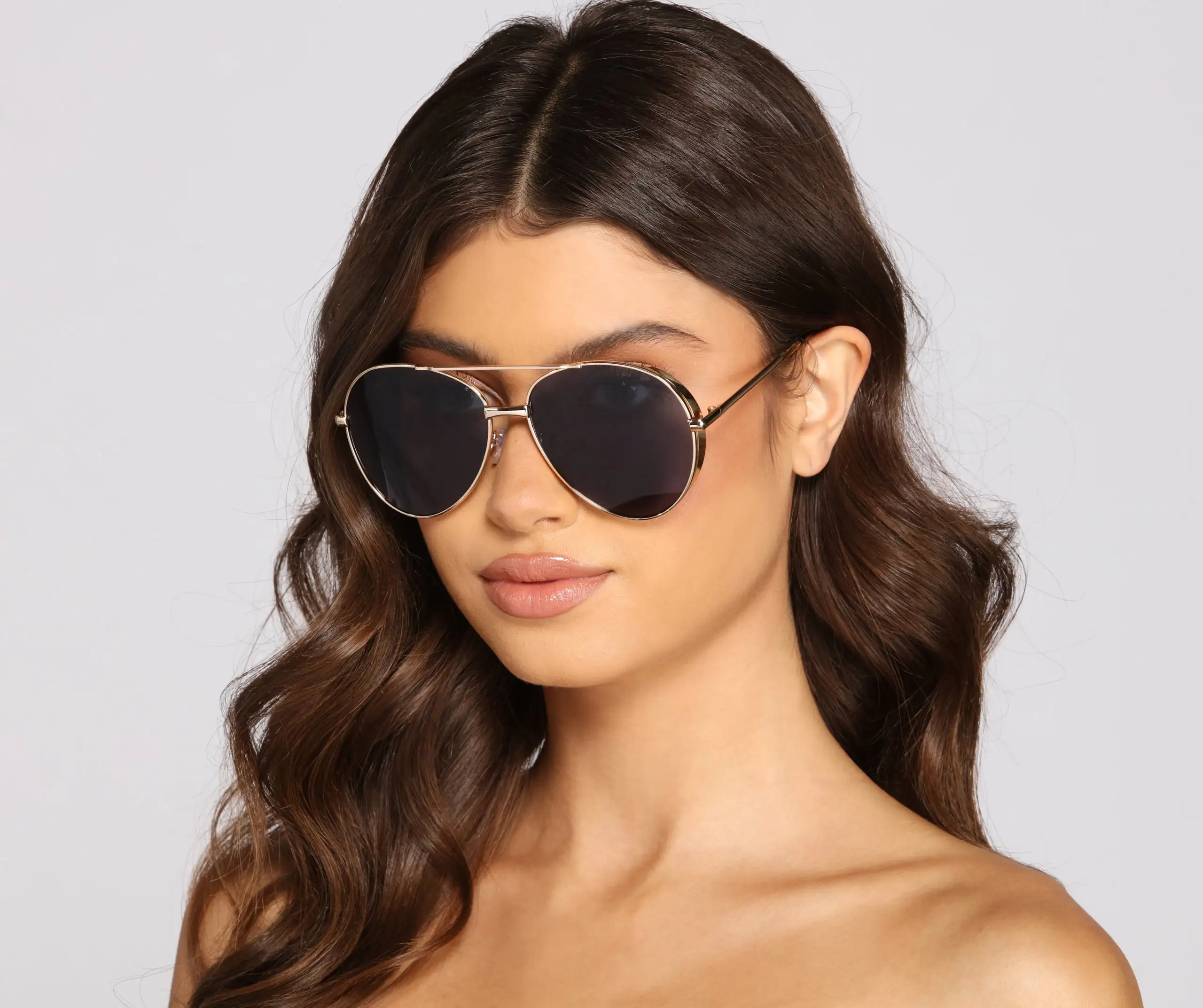 These sleek aviator sunnies will give your outfit major stylish vibes. They feature a traditional aviator design, a metal trim and metal arms, and tinted lenses. Complete your look with a