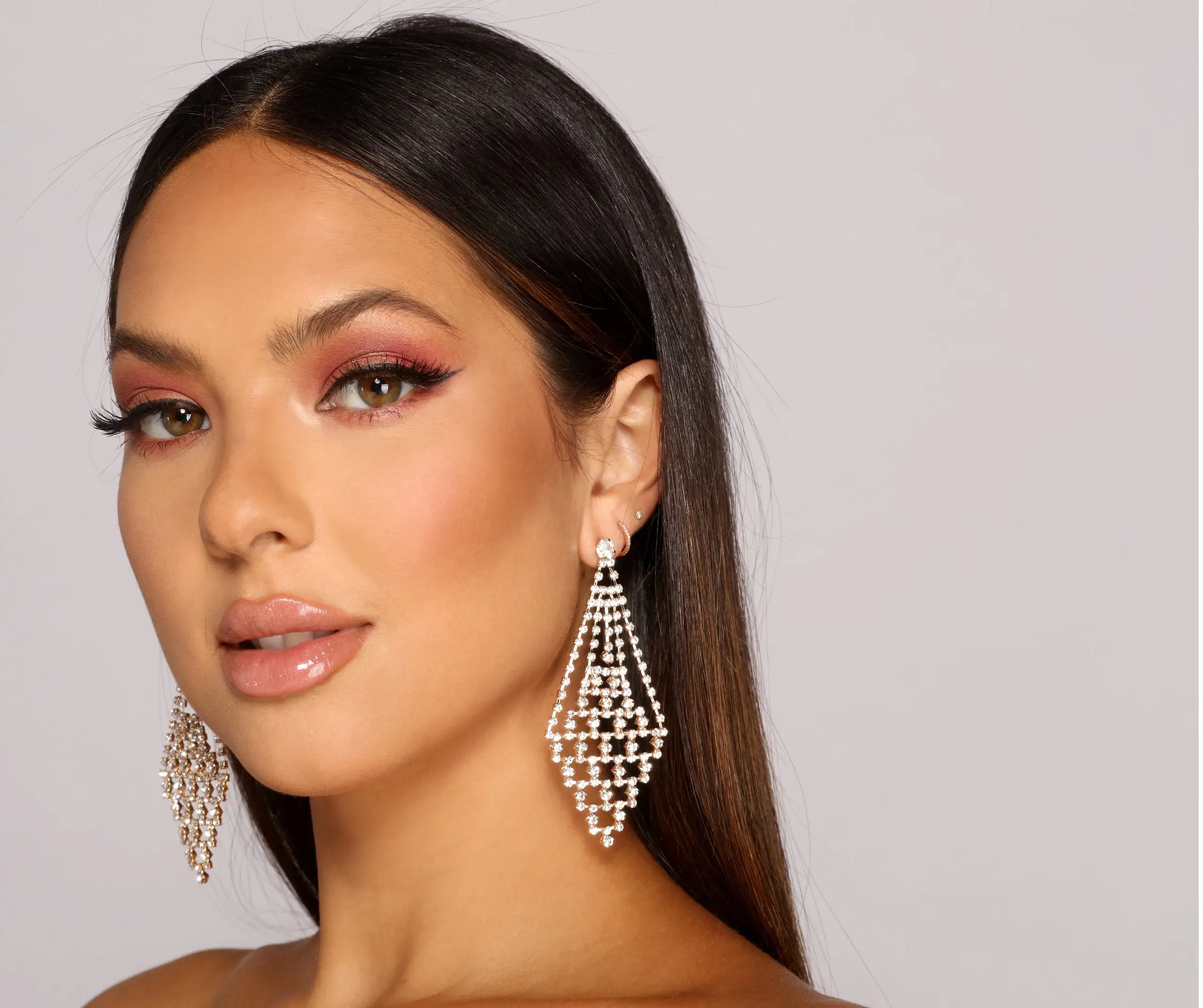 Bring the shine with these earrings that bring the glamour. The earrings feature a rhinestone embellished cascading fringe design. Includes a post back closure. Complete your luxe look with a